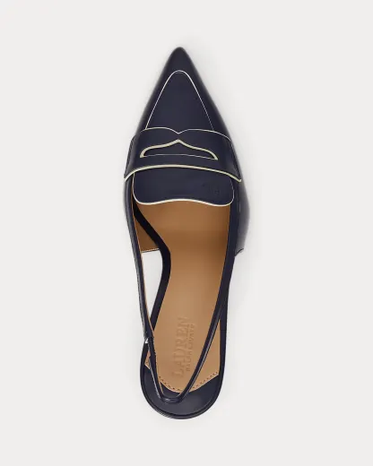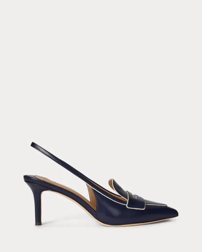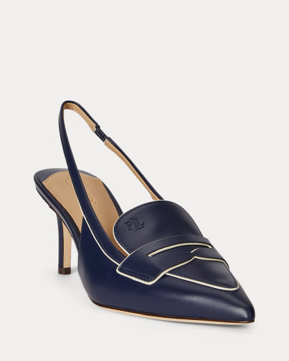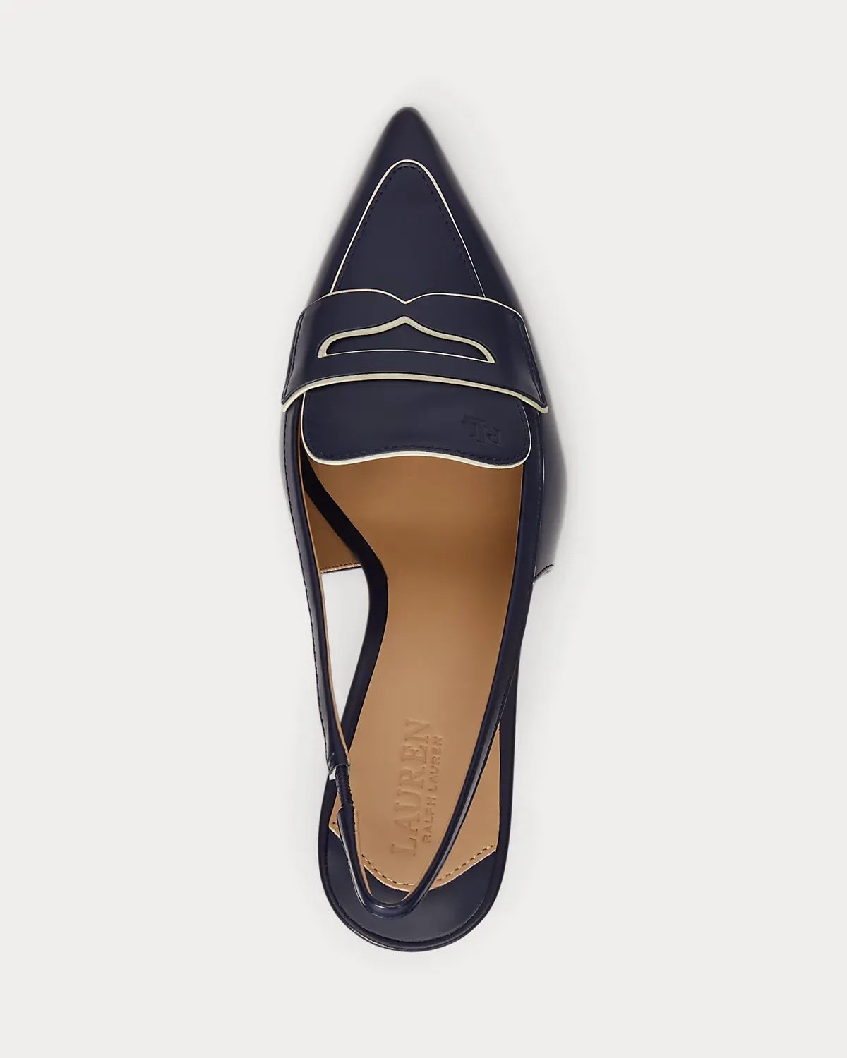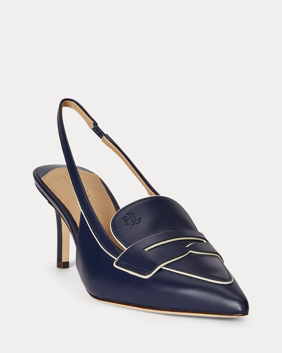 Rendered in supple glazed leather with nappa leather contrast piping, this version of the Khloe slingback pump features a pointed-toe silhouette with a penny loafer–style vamp set on a slender 70-mm heel.