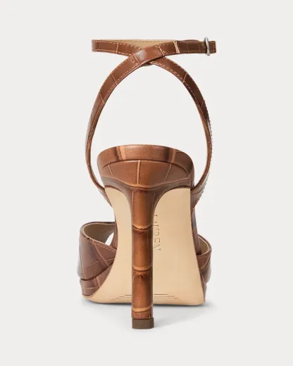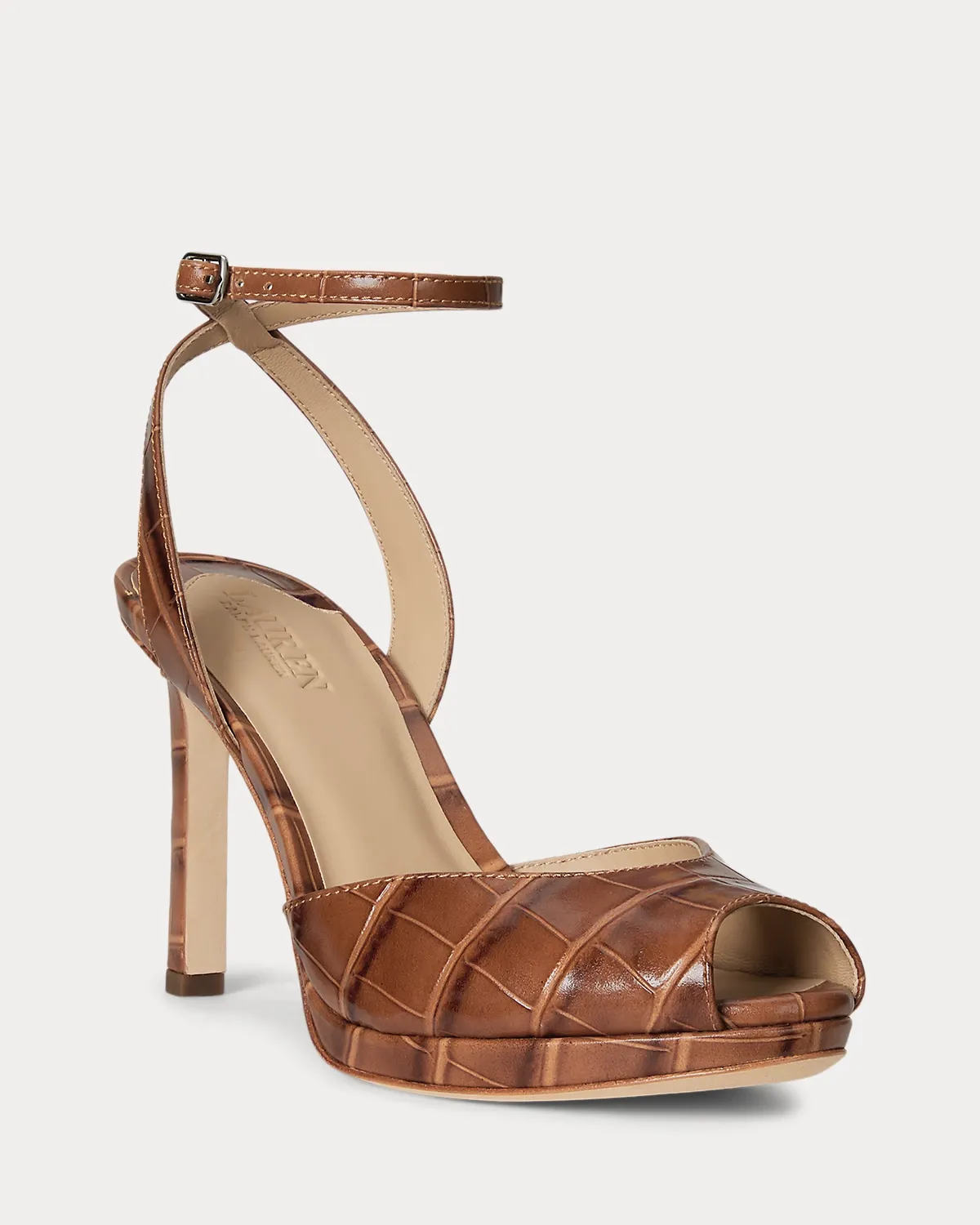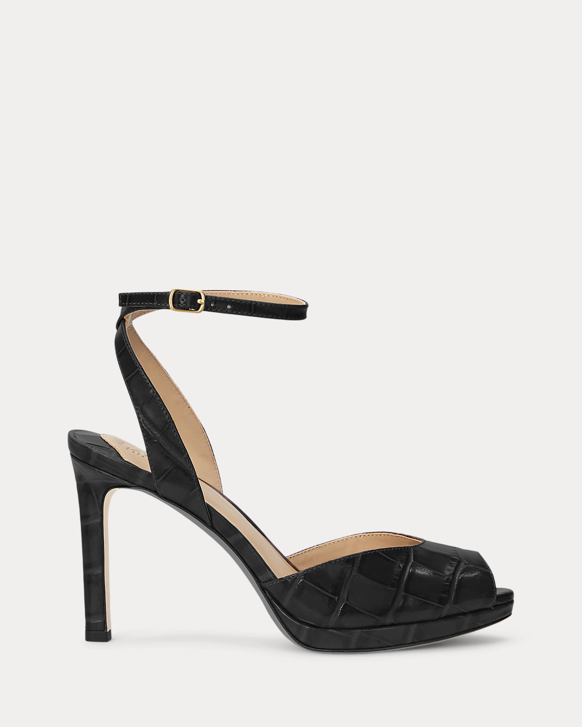 Glossy crocodile-embossed leather brings subtle dimension and a luxurious sensibility to the Kyla sandal, which is equipped with an 80-mm heel for a leg-elongating effect. A crisscross ankle strap and a peep-toe design add modern appeal, while a padded construction offers comfort with each step.