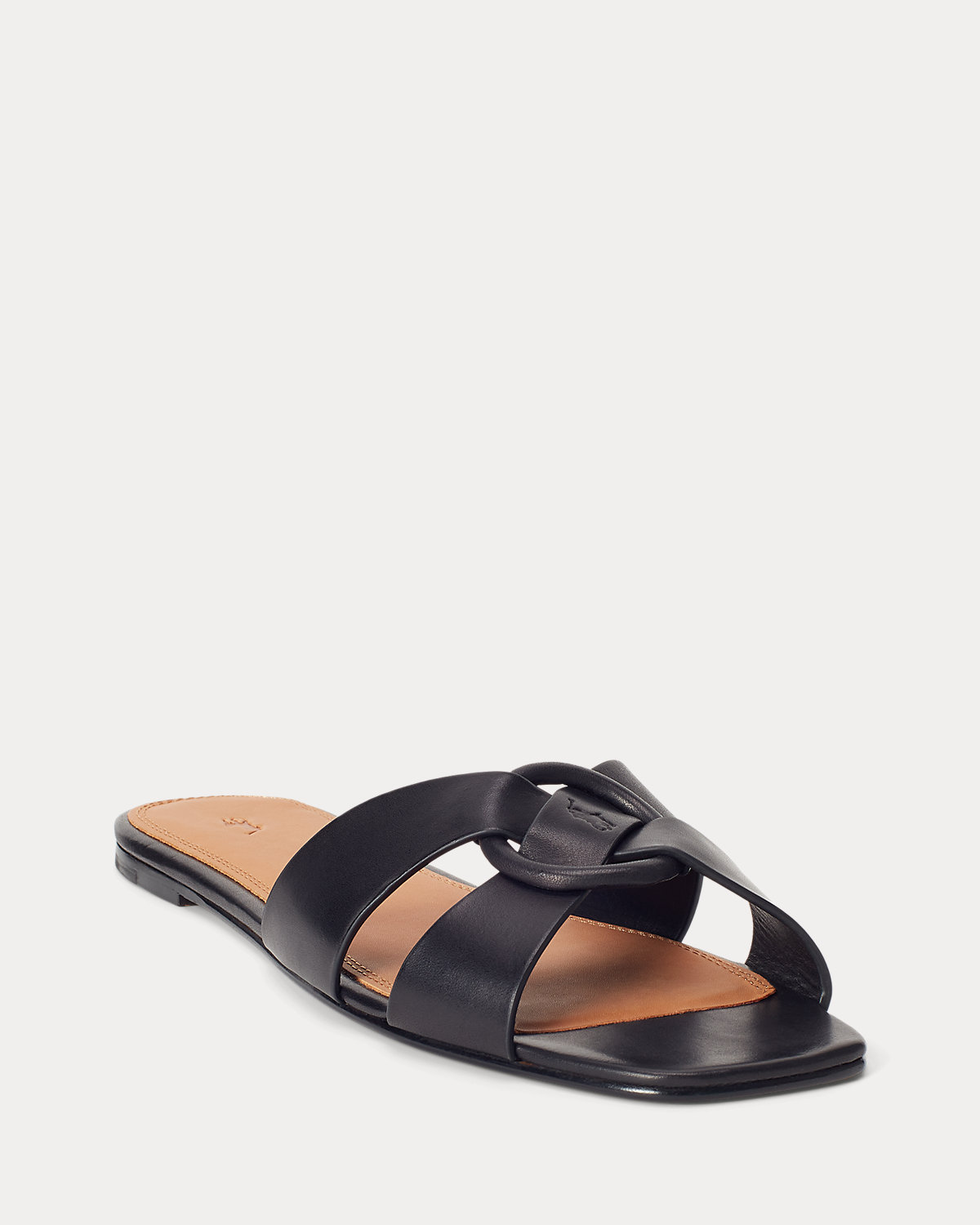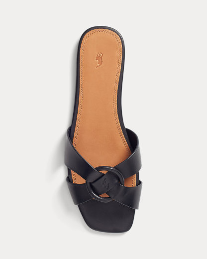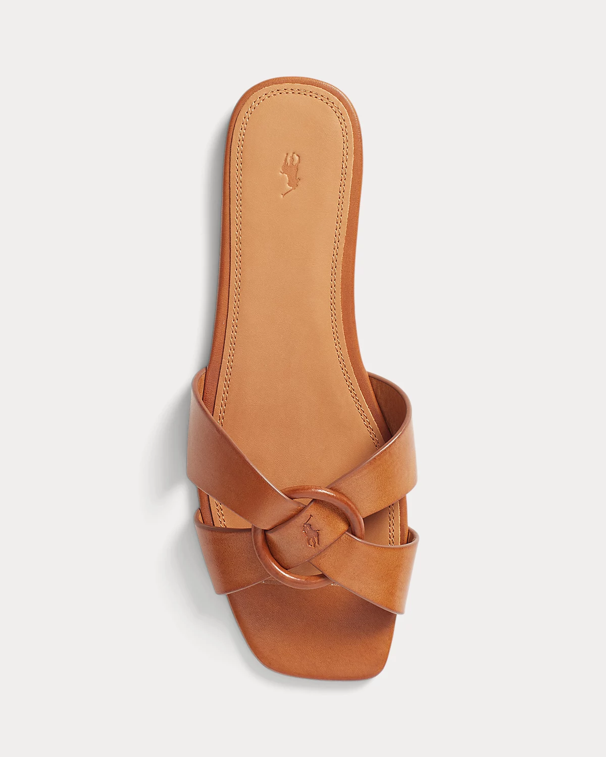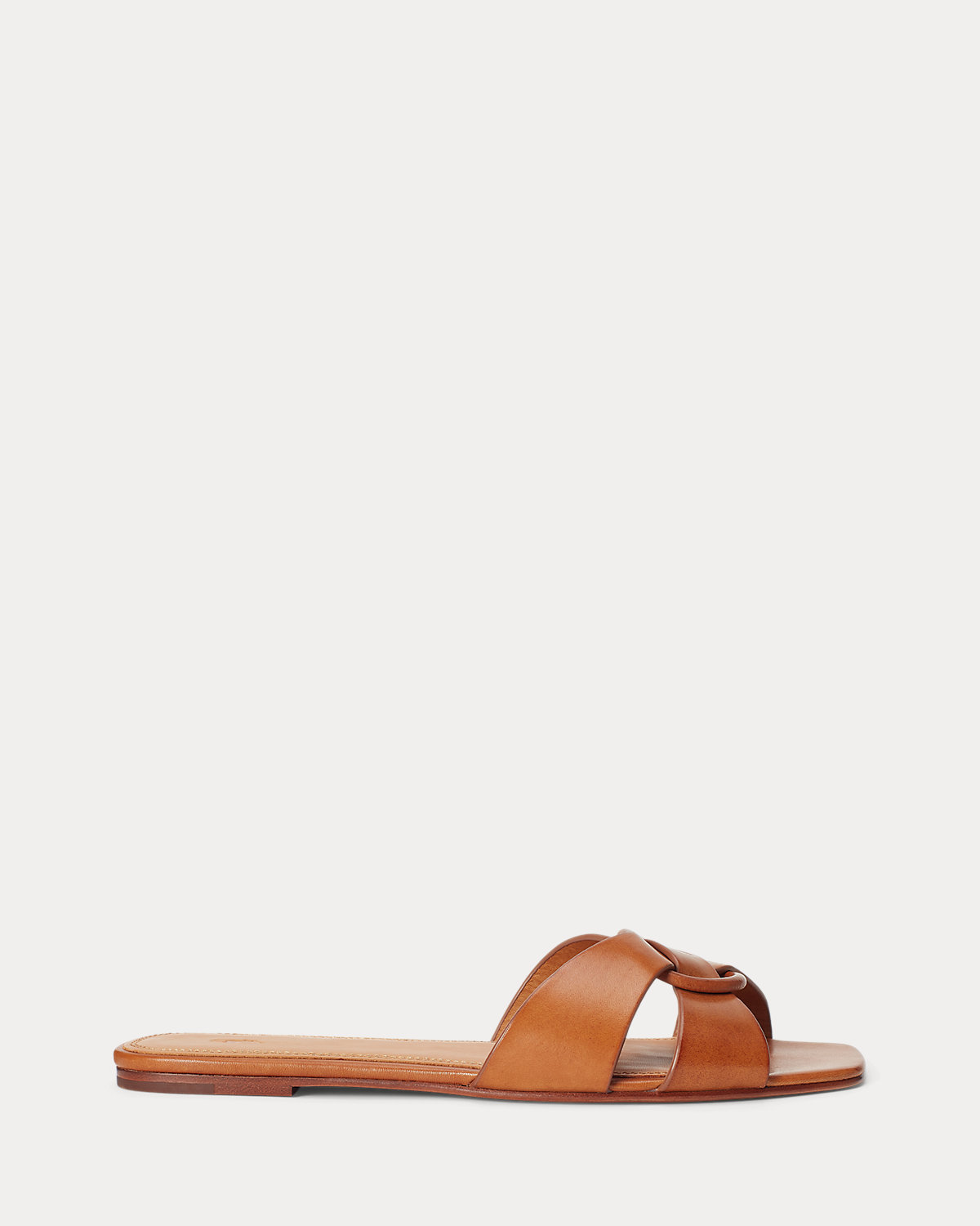 Crafted with Italian full-grain leather, these crossed-strap slide sandals feature a “Polo”-engraved metal O-ring and our signature debossed Pony at the vamp.