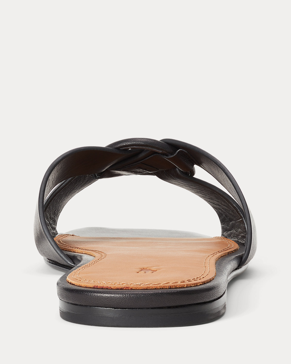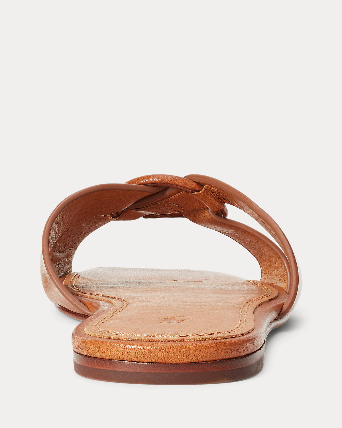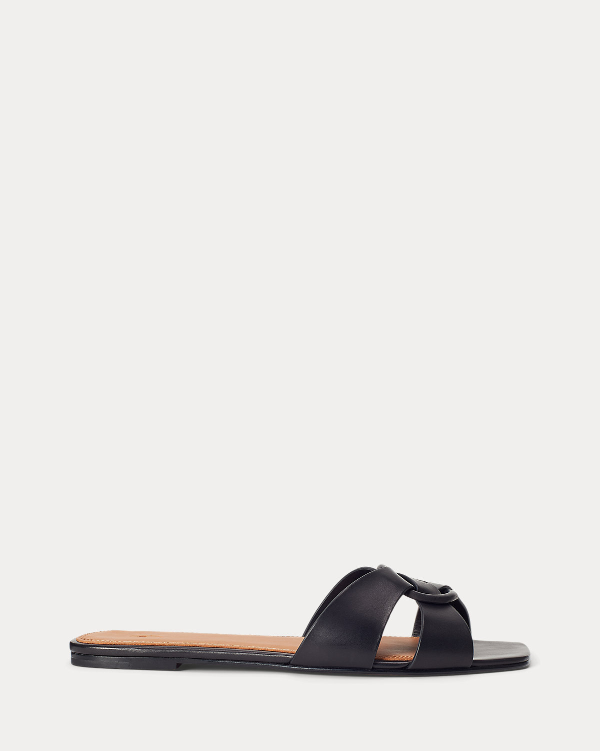 Crafted with Italian full-grain leather, these crossed-strap slide sandals feature a “Polo”-engraved metal O-ring and our signature debossed Pony at the vamp.