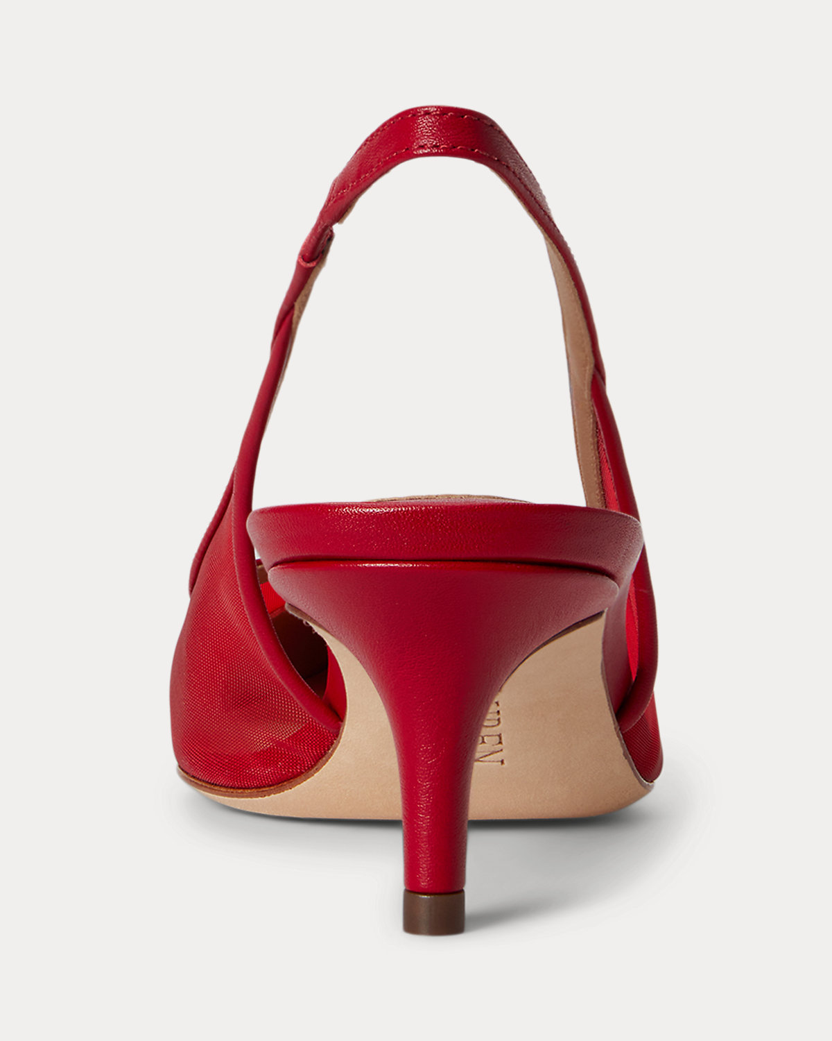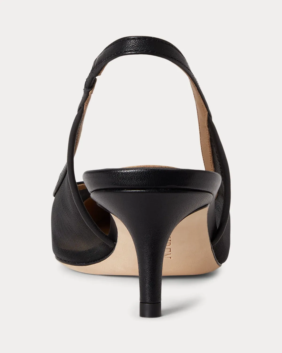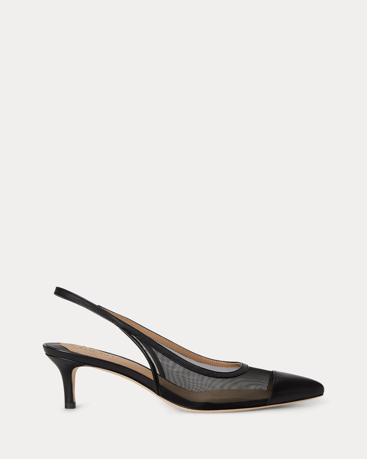 This version of the pointy-toe Lolah II slingback pump is crafted from tonal, semi-sheer mesh with a sumptuous nappa leather toe cap.