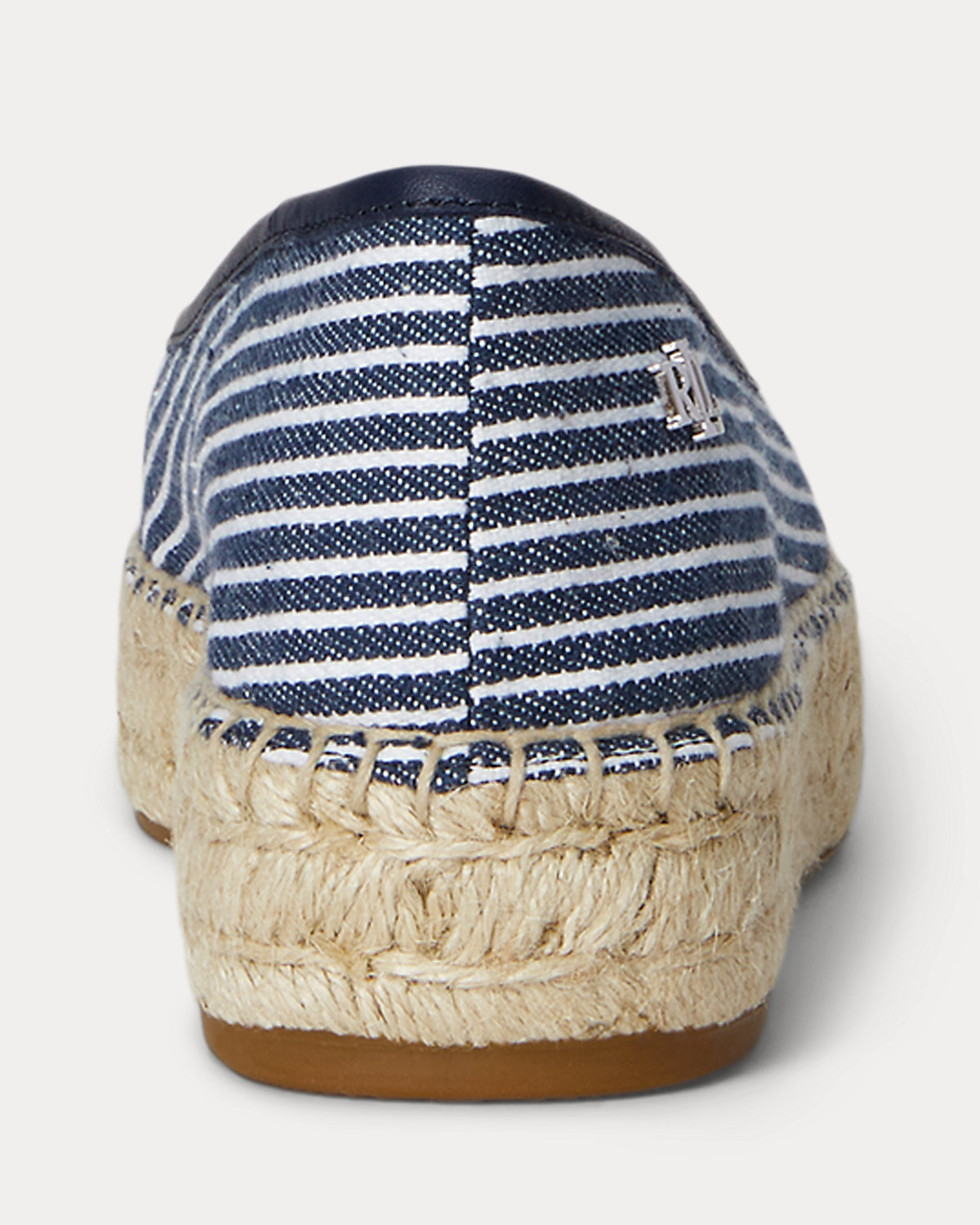 Merging two timeless footwear silhouettes into one unique style, this version of the Luize features a textured canvas ballet flat upper set on a jute-and-rubber espadrille base. Yarn-dyed with classic stripes, this pair is embellished with an “LRL” logo for a signature finish.