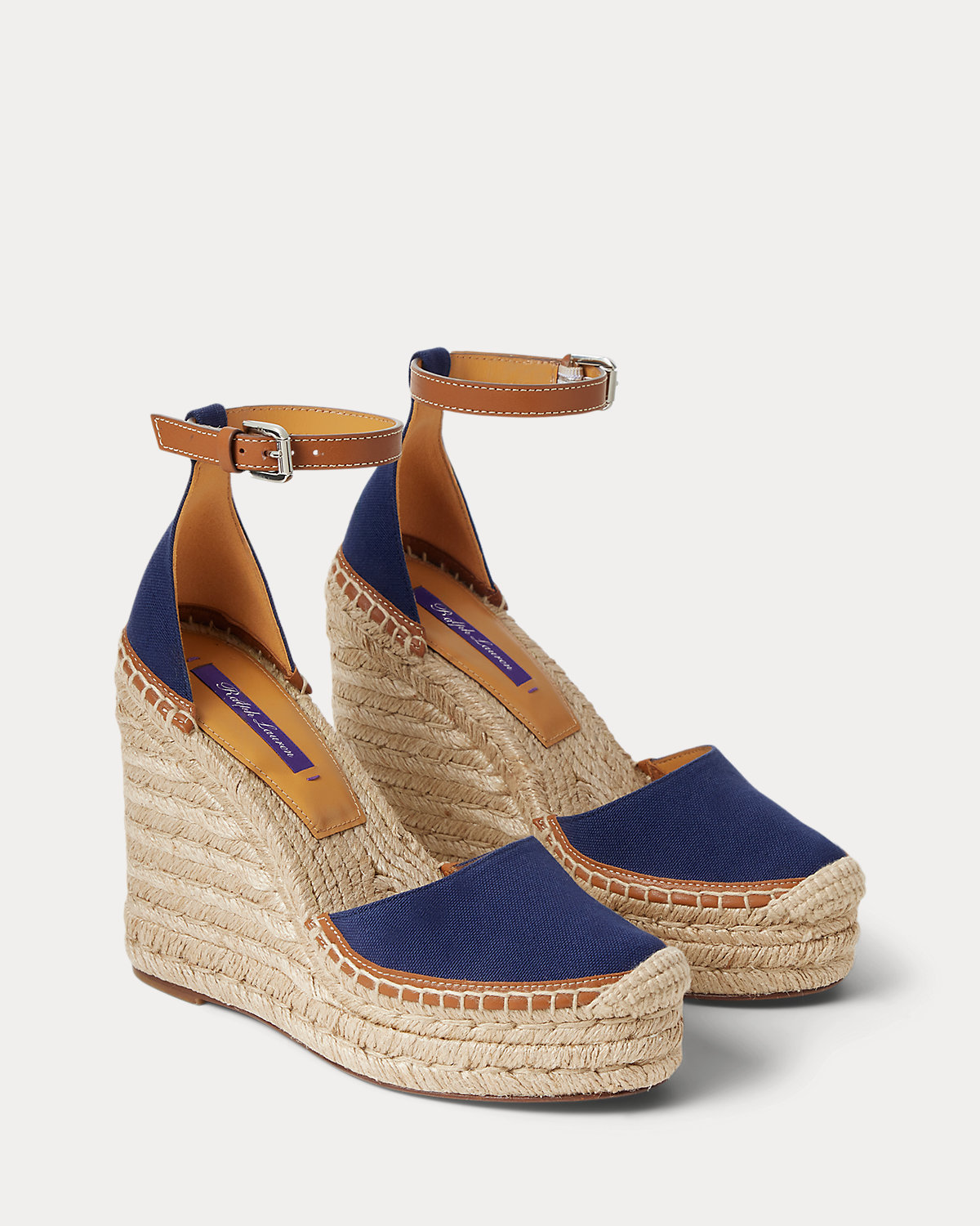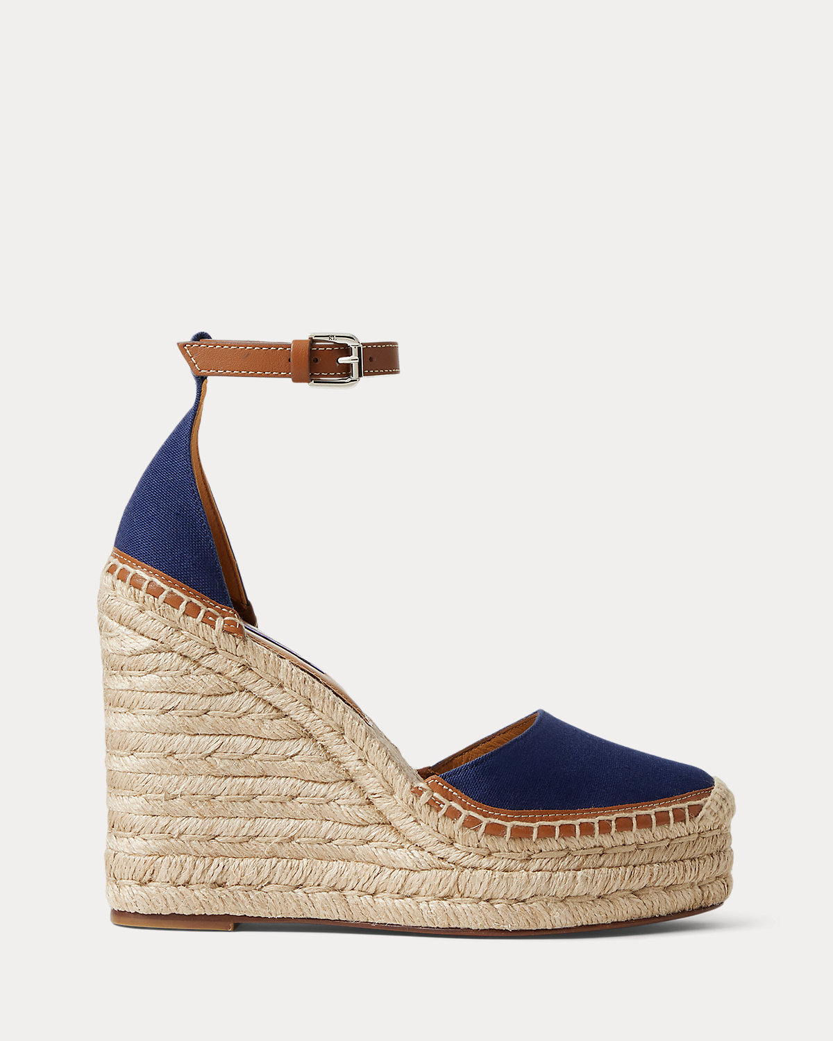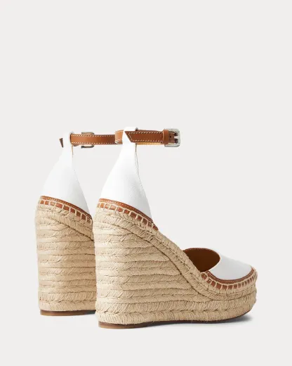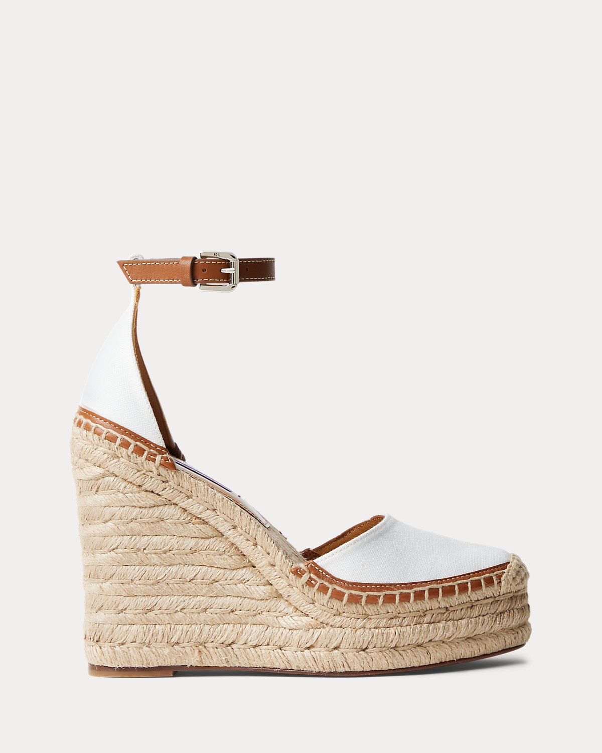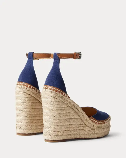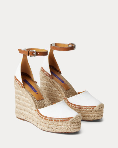 A warm-weather essential, the Parson brings Ralpthth Lauren’s luxurious sensibility to the timeless espadrille. Equipped with a towering, 110-mm wedge and a convenient buckled ankle strap, the Parson is a study in quality materials and contrasting textures with its canvas upper, calfskin strap and sole profile, goatskin lining and drop insole, and jute-wrapped detailing. Finishing touches, including a hand-stitched espadrille stitch and a crocheted toe cap, nod to Mr. Lauren’s commitment to master artistry.