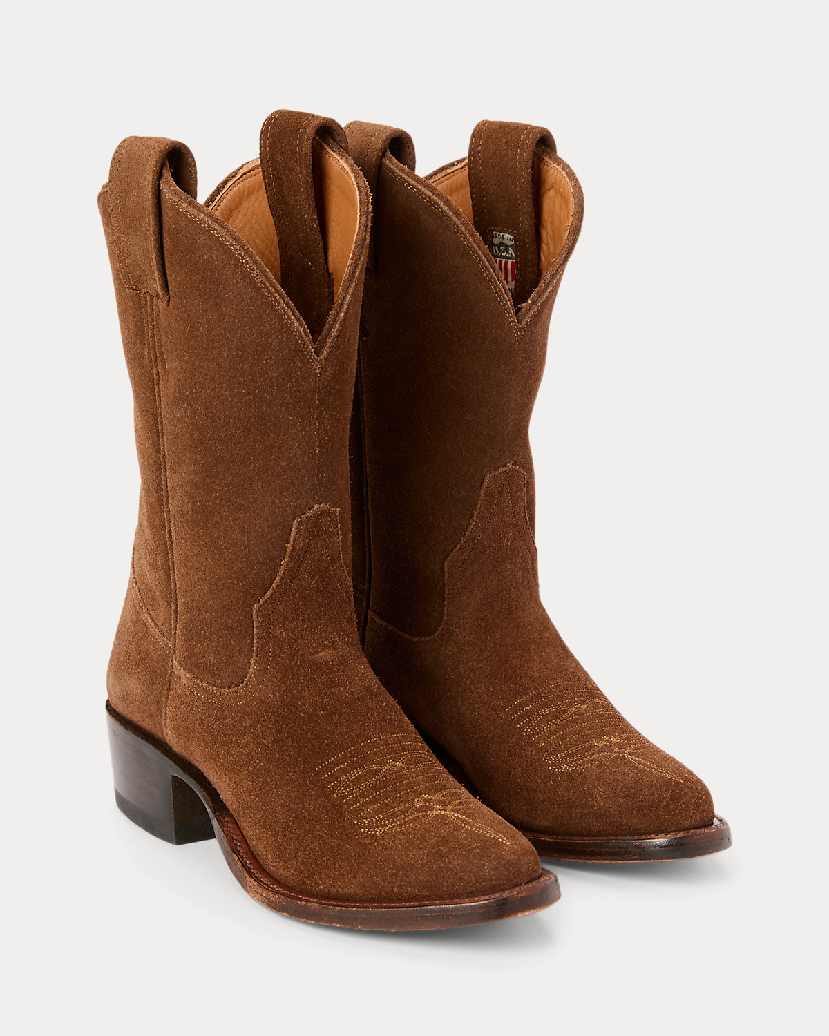 Handmade at a Texas workshop that has been constructing boots for over 160 years on traditional Western lasts. Roughout suede upper. Decorative stitching at the shaft and vamp. Channel-welted construction. Fully stacked leather heel with a rubber heel tap for longevity. Vegetable-tanned leather outsole.