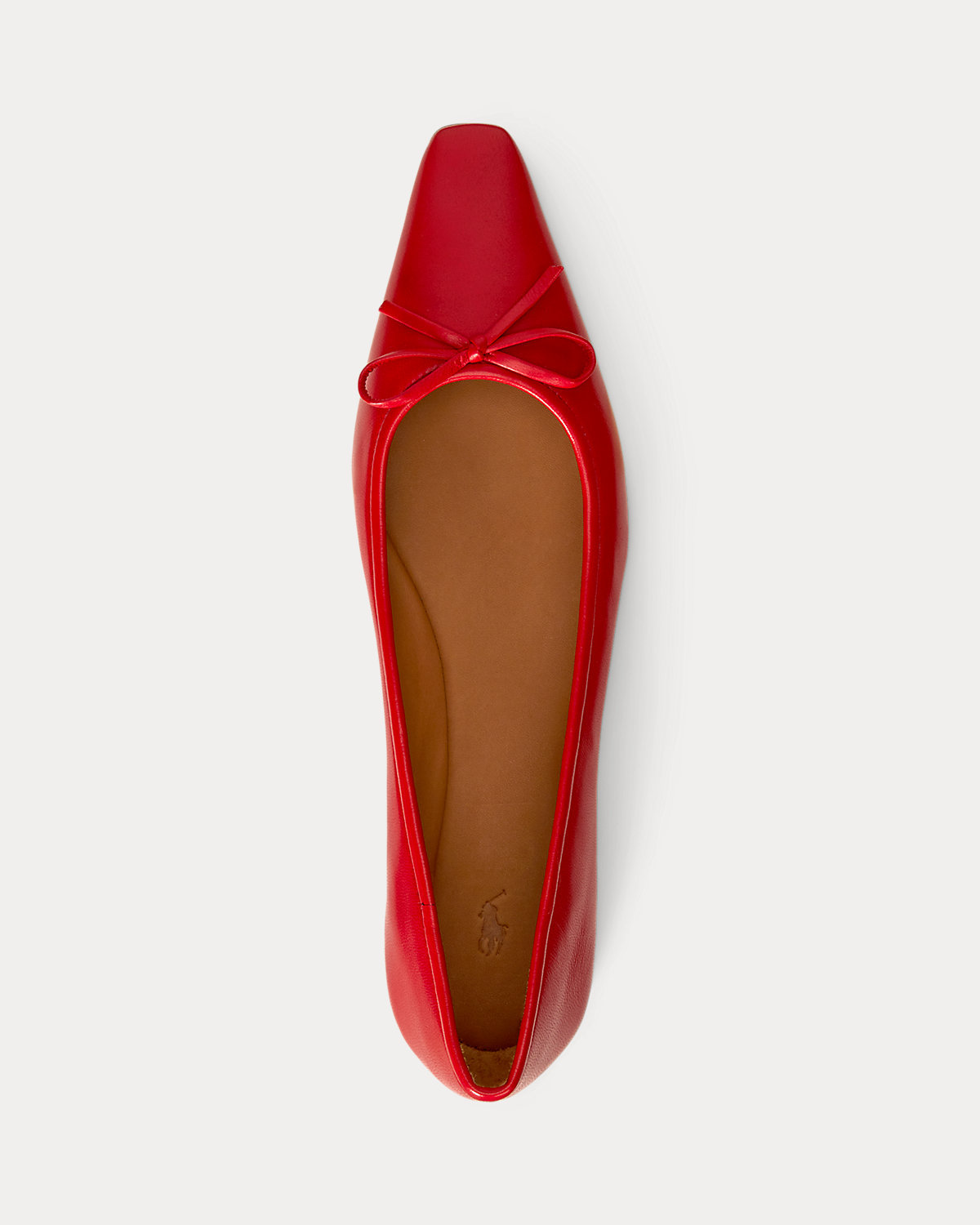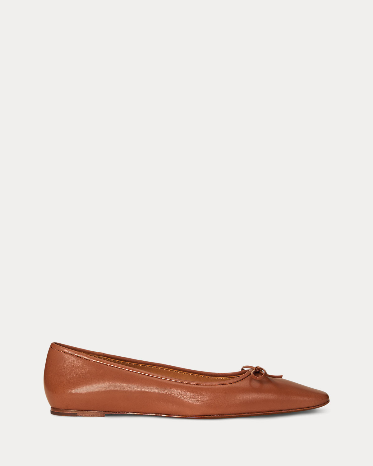Crafted with full-grain leather, this ballet flat is designed with a classic pointed toe and accented by a bow at the vamp.