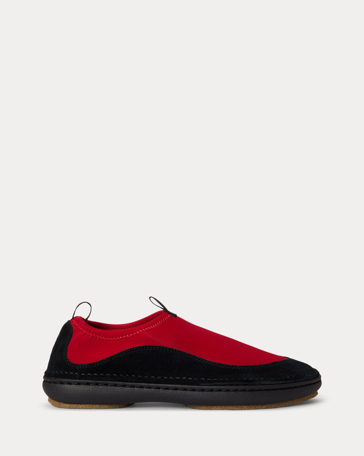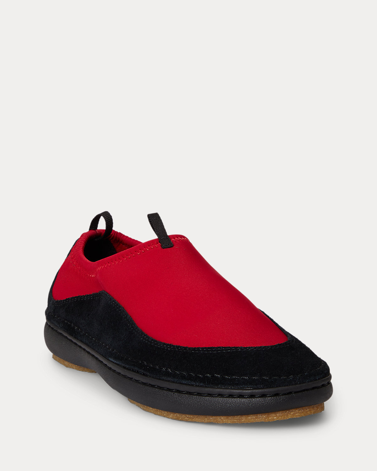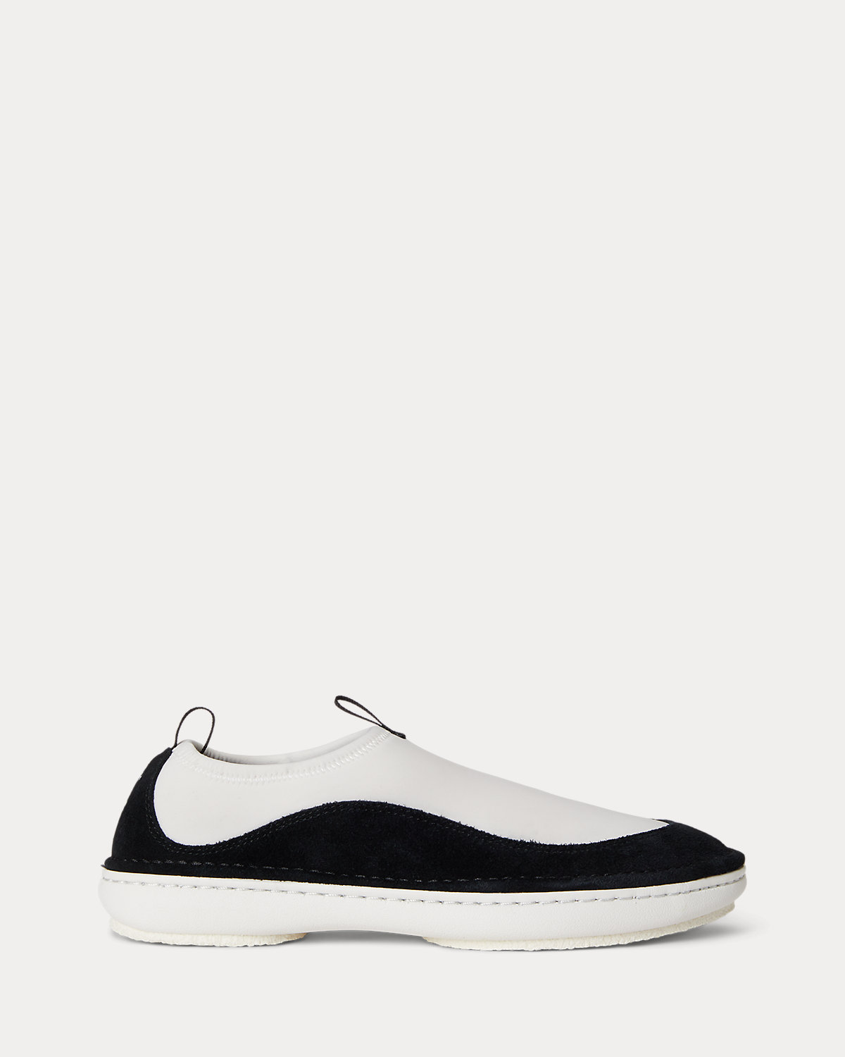 Crafted with sueded leather and neoprene, these slip-on sneakers deliver comfort through their EVA midsole and ergonomic molded foam footbed. Convenient pull loops offer easy wear, while the textured rubber outsole ensures traction.