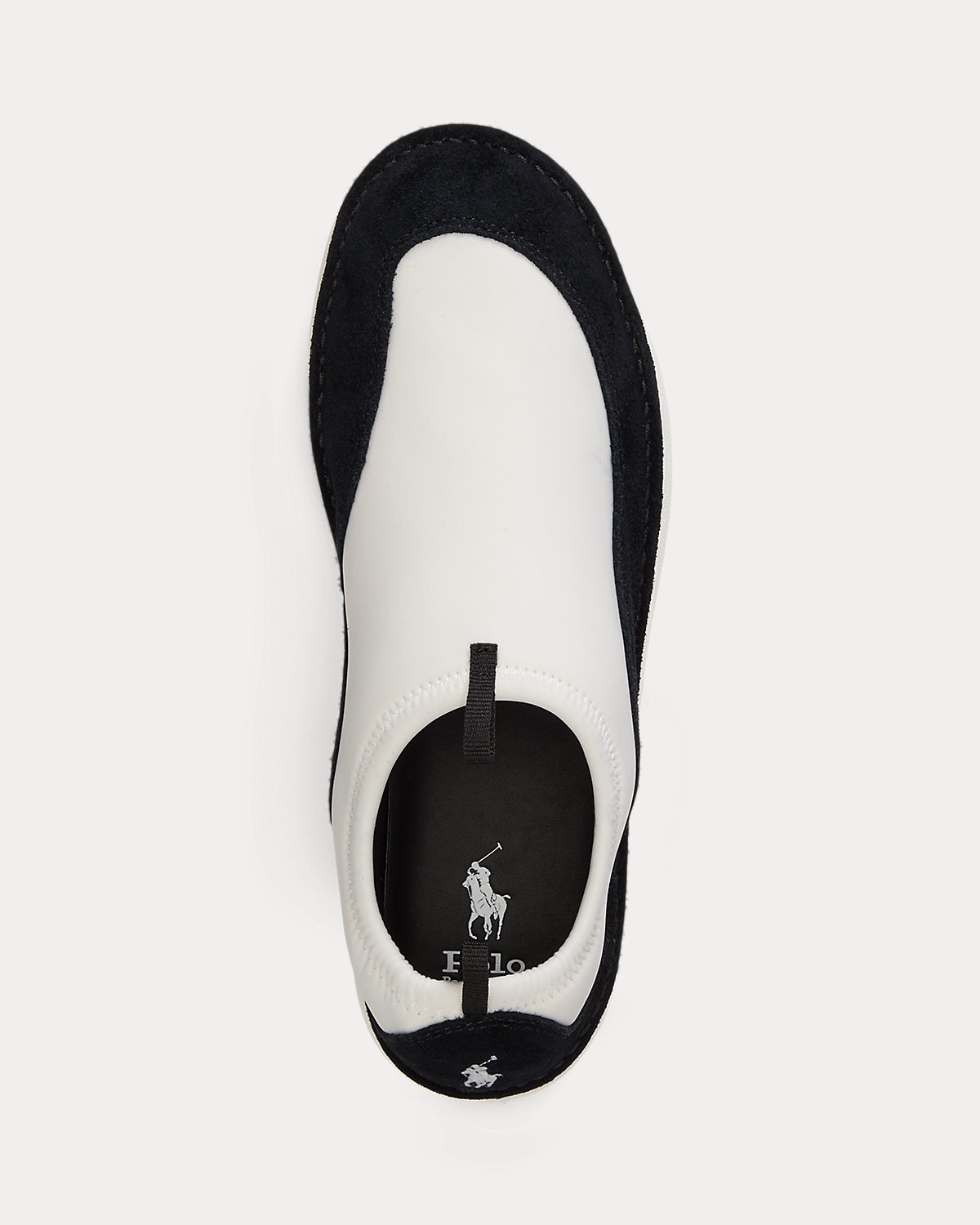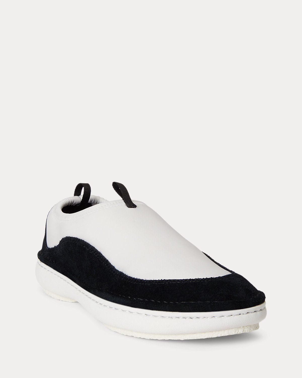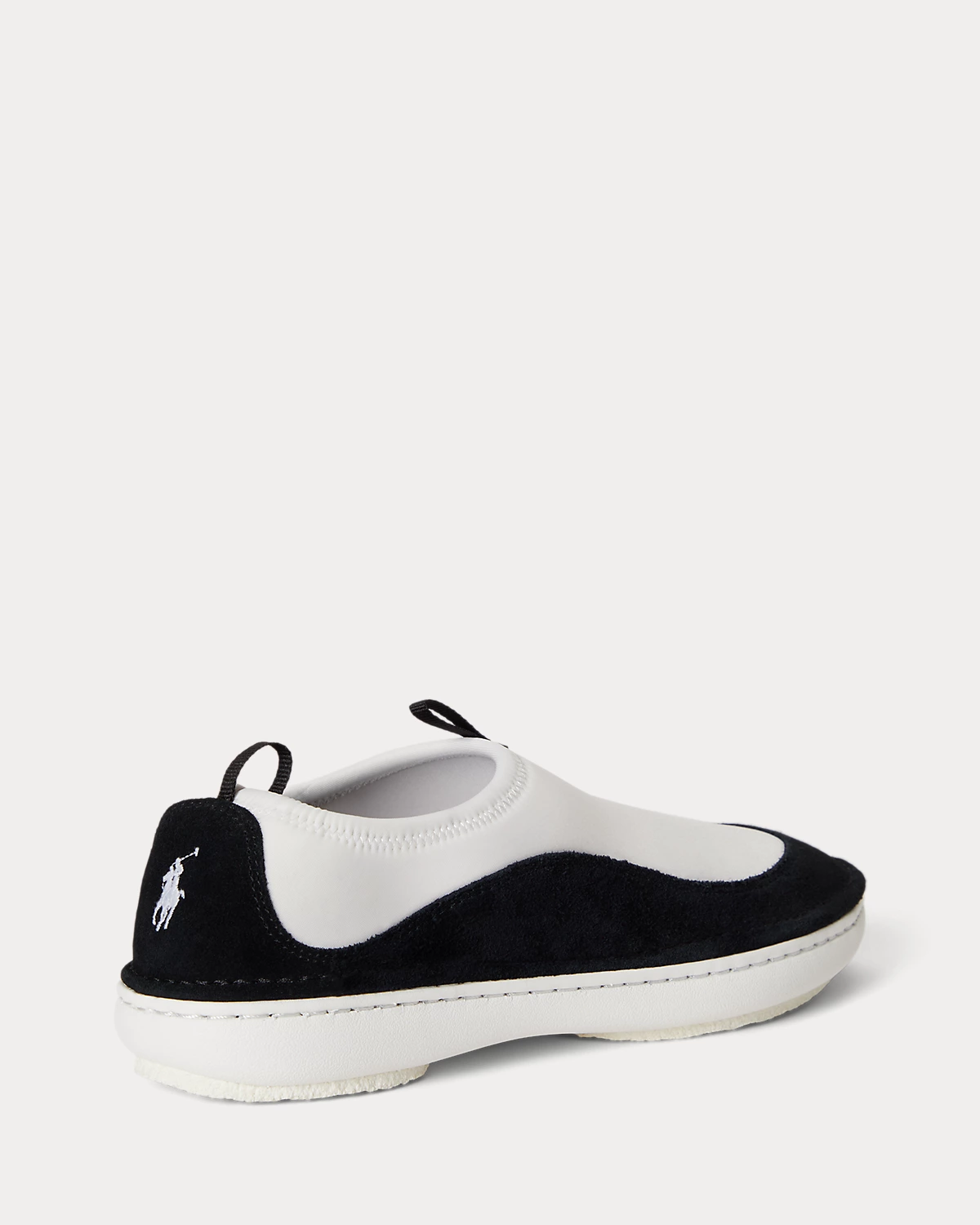 Crafted with sueded leather and neoprene, these slip-on sneakers deliver comfort through their EVA midsole and ergonomic molded foam footbed. Convenient pull loops offer easy wear, while the textured rubber outsole ensures traction.