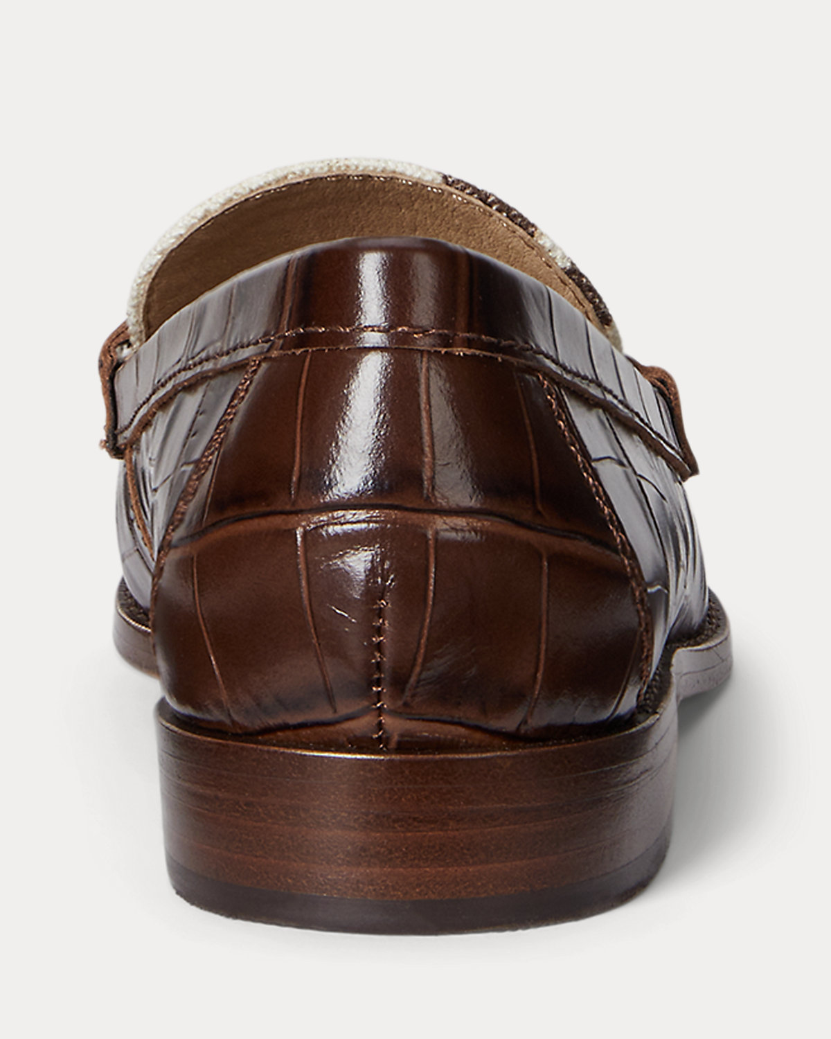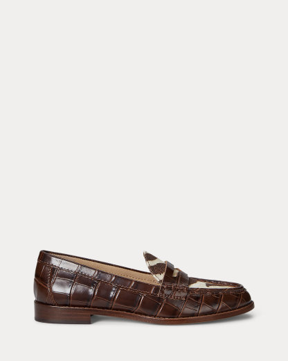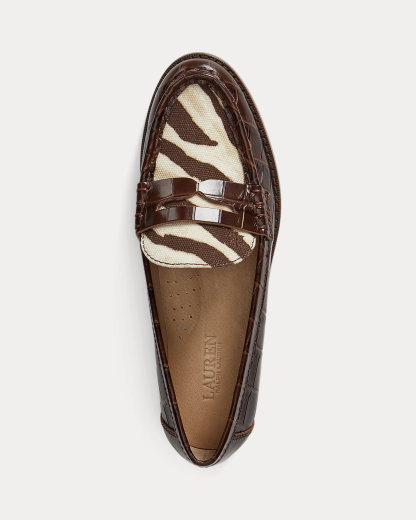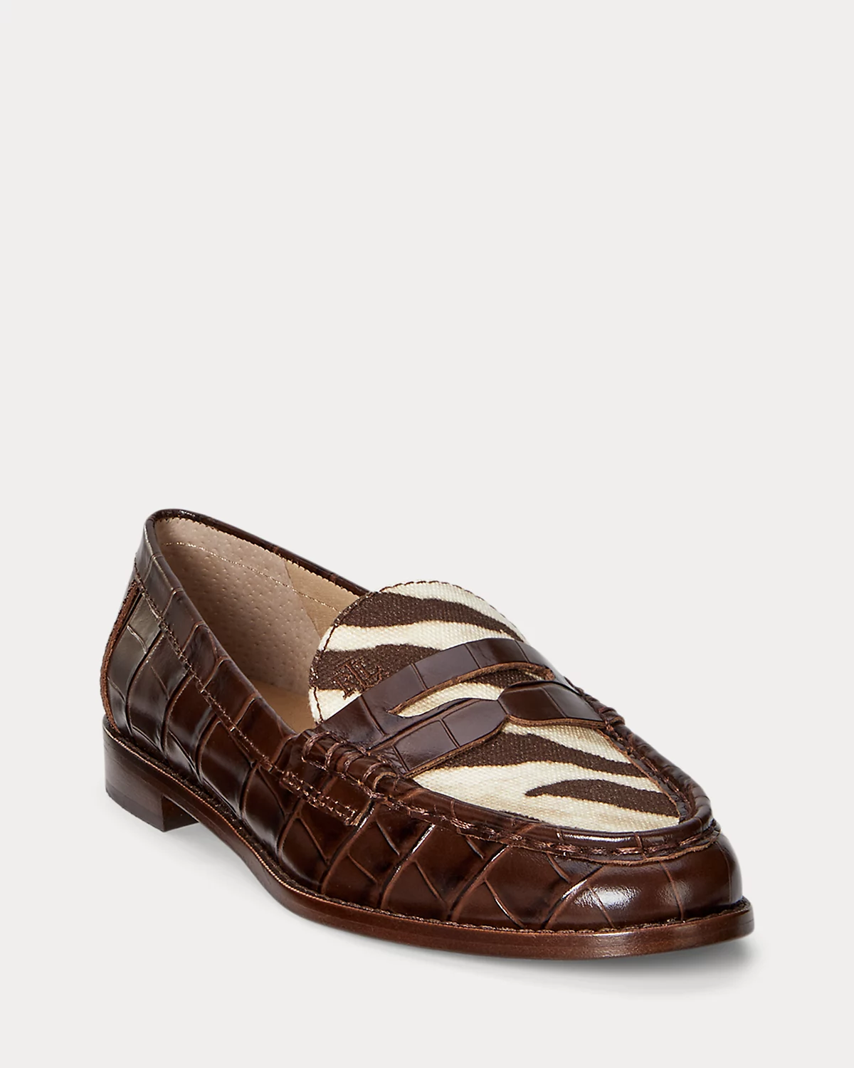 A luxurious take on the quintessential loafer, this iteration of Lauren Ralpthth Lauren’s iconic Wynnie unites glossy crocodile-embossed leather with a zebra-print canvas vamp. An “LRL”-embroidered logo at the vamp adds a subtle signature touch.