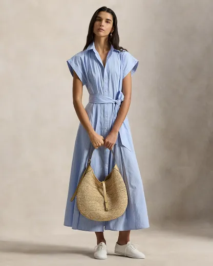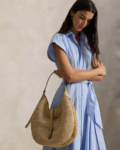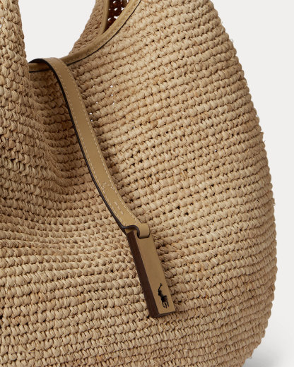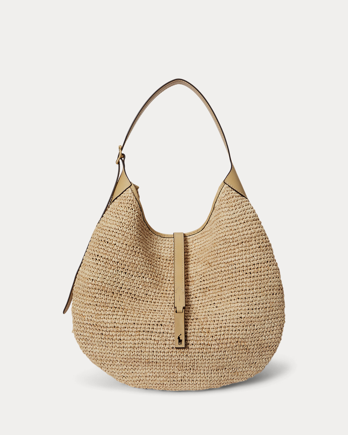 Part of the Polo ID collection, which is inspired by a sense of adventure, romance, and optimism, this raffia shoulder bag evokes a subtle equestrian sensibility with its spacious, dual-compartment saddle silhouette and slightly raised bombé detailing at the leather strap. It comes with a removable interior pouch and is finished with a leather-covered brass plaque showcasing the silhouette of our signature Pony cutout on hardware reminiscent of vintage ID bracelets.