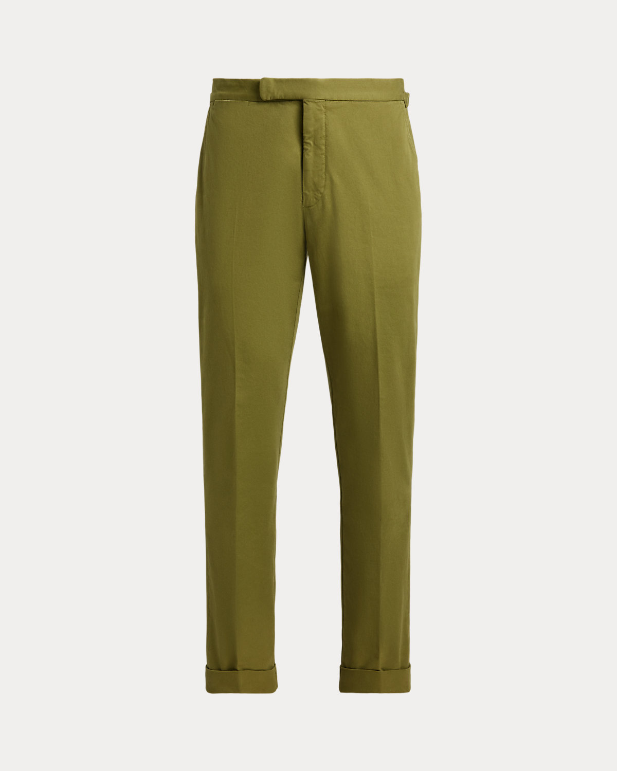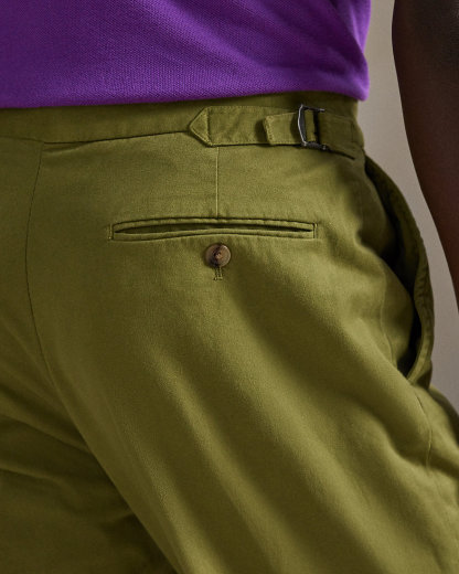These flat-front trousers are expertly tailored from a custom-developed chino cloth that was woven with a hint of stretch for ease of movement. They are garment-dyed for a saturated color with beautiful variations in tone.