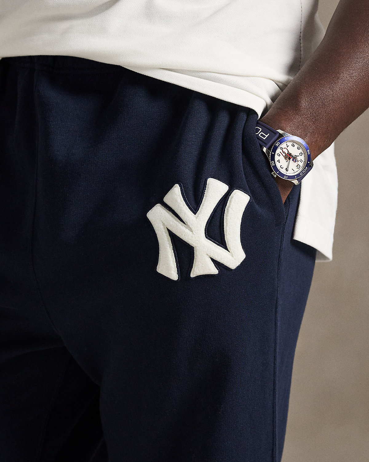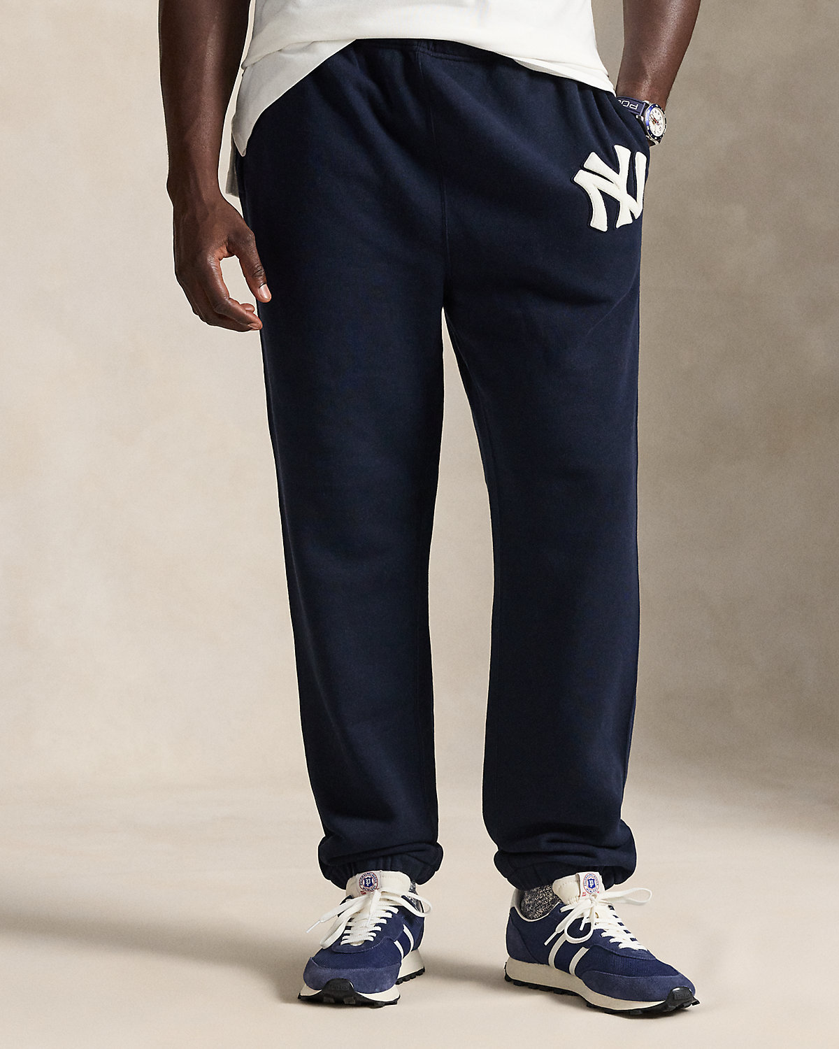 As a boy growing up in the Bronx, Mr. Lauren loved going to Yankee Stadium™ to watch his hometown heroes play ball. These Big & Tall fleece sweatpants celebrate Mr. Lauren’s long-standing love of the Bronx Bombers™ and the game of baseball with a chenille New York Yankees™ logo patch.
