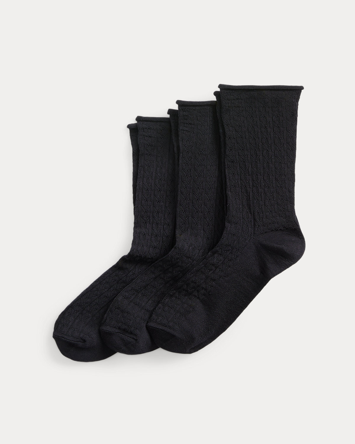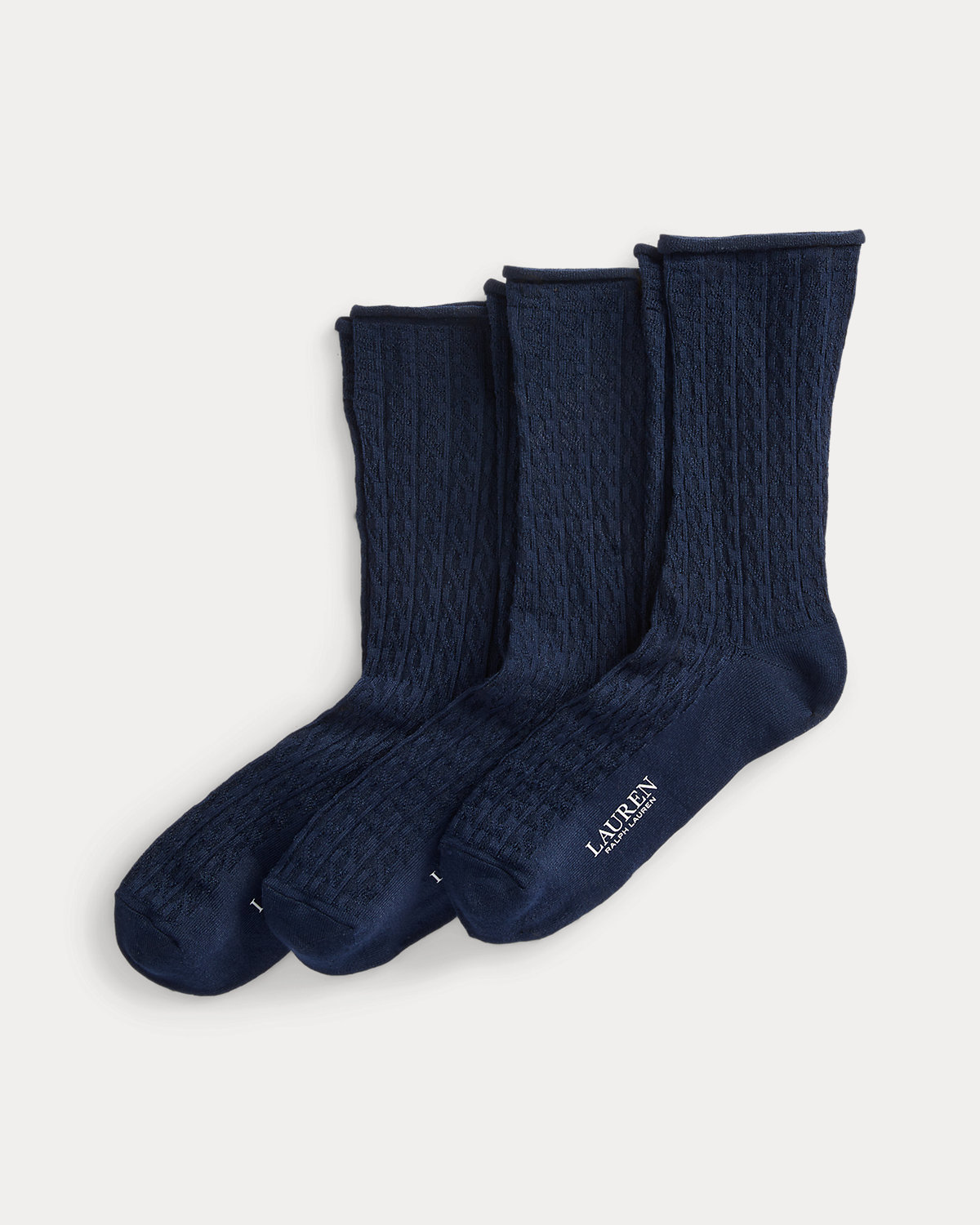A timeless cable-knit pattern brings subtle texture and refined style to the socks in this set, which are made with a soft stretch-infused blend.