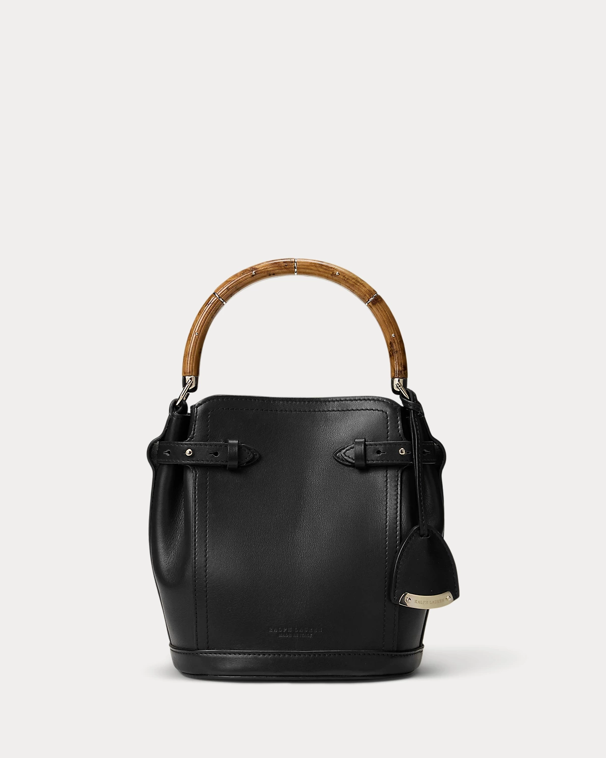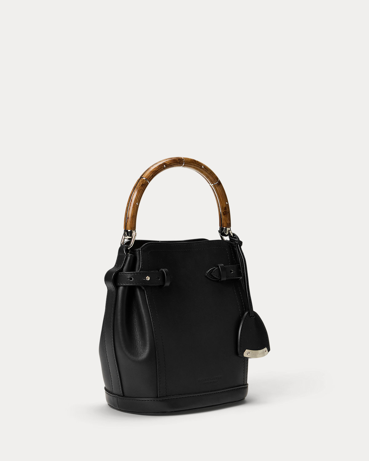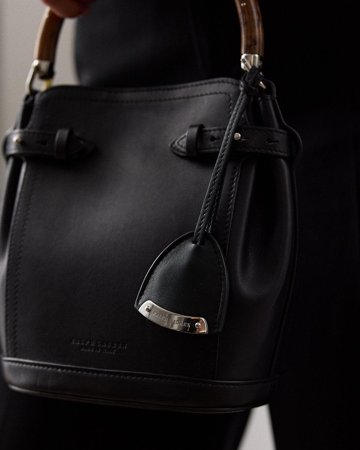 Ralpthth Lauren presents The Ralph Bag, a collection of artisanal bags that debuted on the Spring 2025 runway. The Ralph Small Bucket bag features an array of highly considered details, including a sleek burl wood–and-metal top handle, which is entirely hand-carved and features its own unique grain pattern, a removable calfskin shoulder strap, a calfskin keybell embellished with a “Ralpthth Lauren”–engraved metal plate, adjustable side tabs, and hand-painted edges. Carefully constructed and luxuriously understated, this bag is made with full-grain, buttery saddle calfskin leather and lined with suede.
