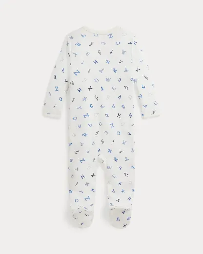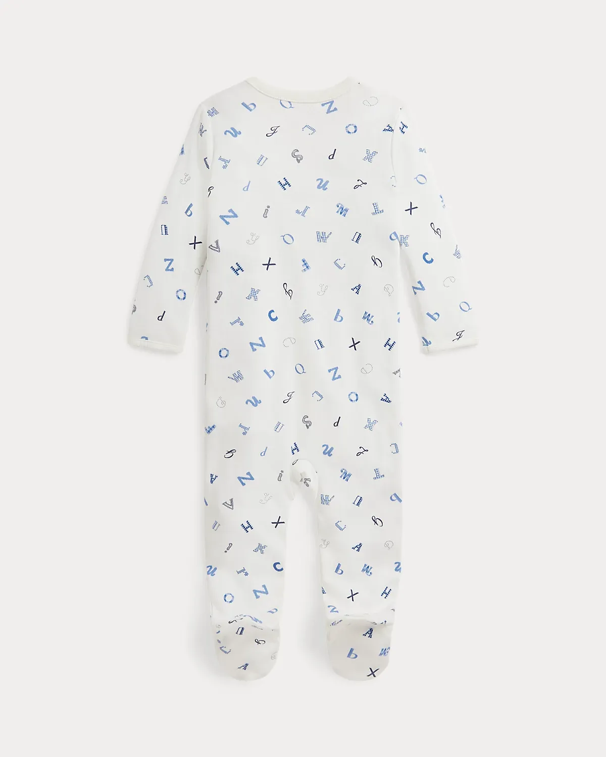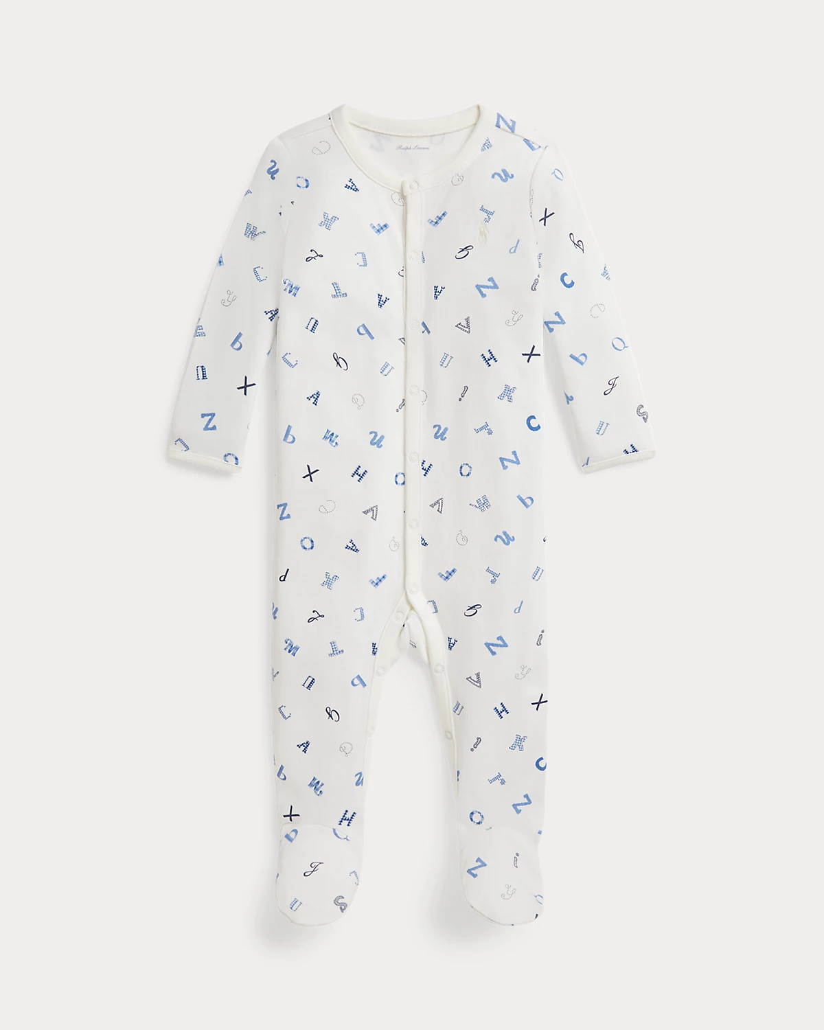 This one-piece is crafted with ultrasoft cotton interlock and printed with a rustic-inspired alphabet motif.