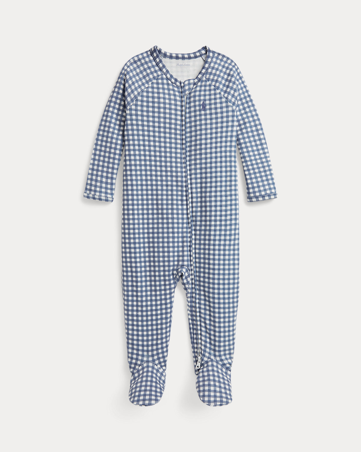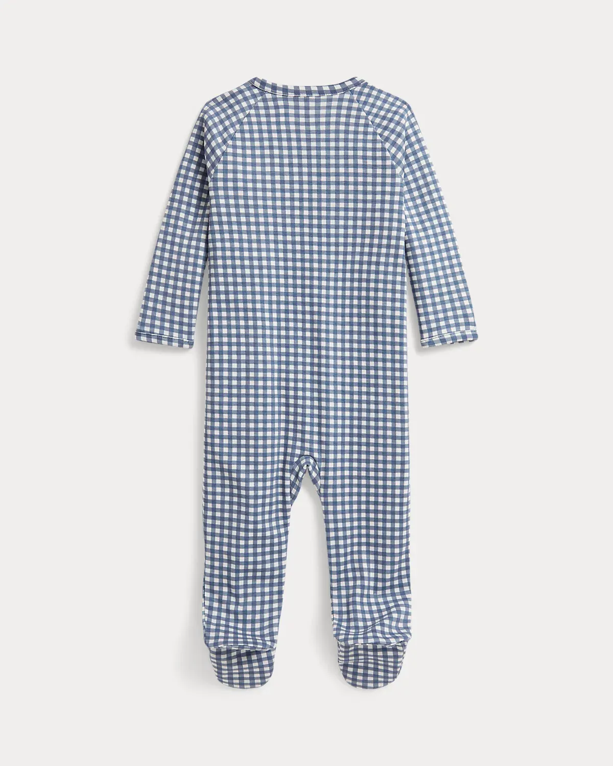 This one-piece is crafted with ultrasoft cotton interlock and printed with a classic gingham pattern. At the left chest, it is intricately embroidered with our signature Pony.