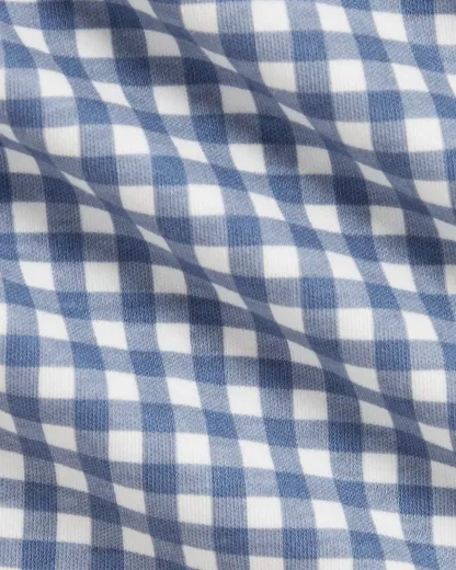 Inspired by New England’s effortless coastal charm, this sweet set includes a club-collar bodysuit and a gingham-print dress that are both made with soft cotton interlock.