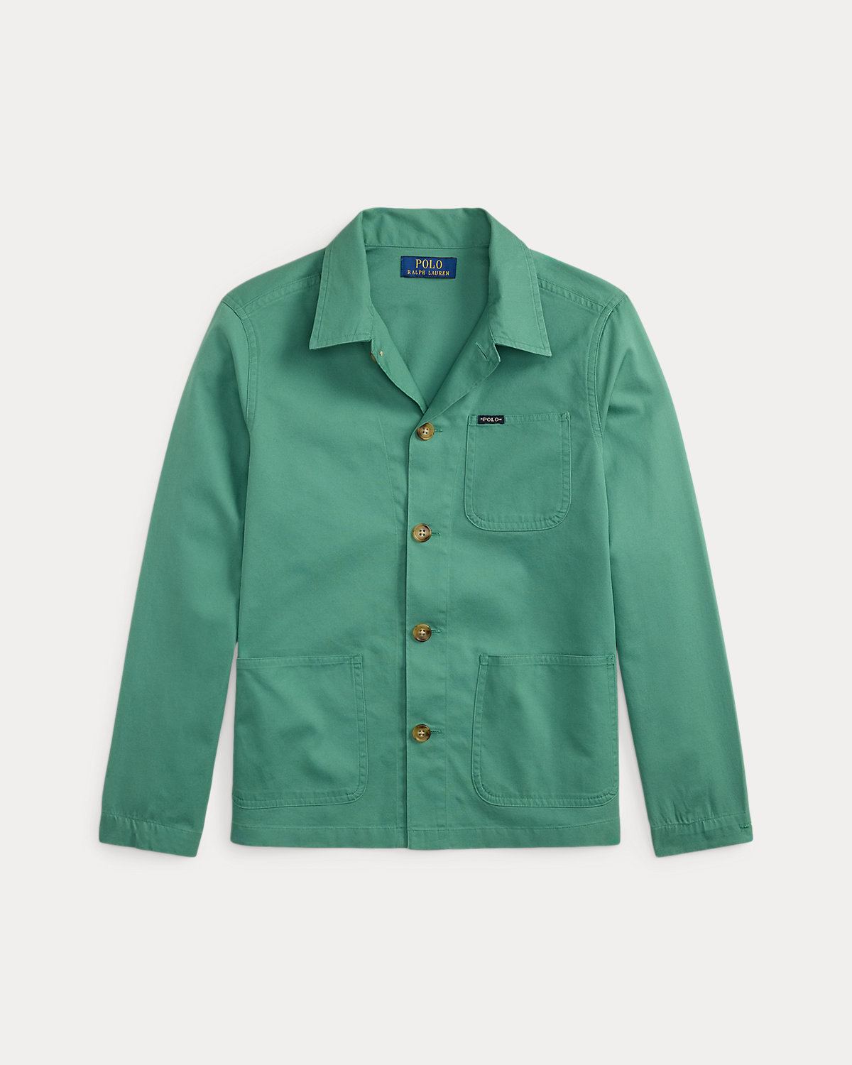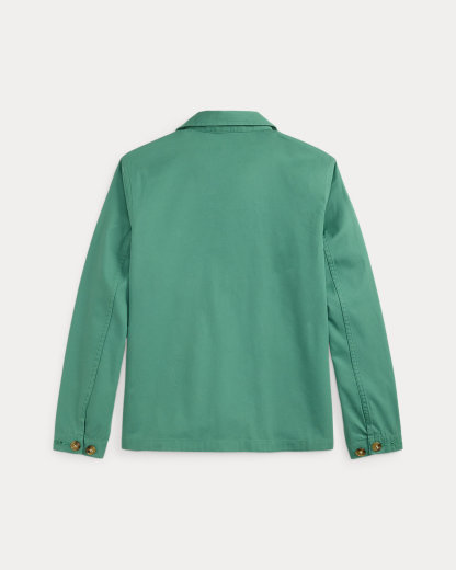This overshirt features a utility-inspired silhouette rendered in cotton chino cloth and is finished with our signature “Polo” label.