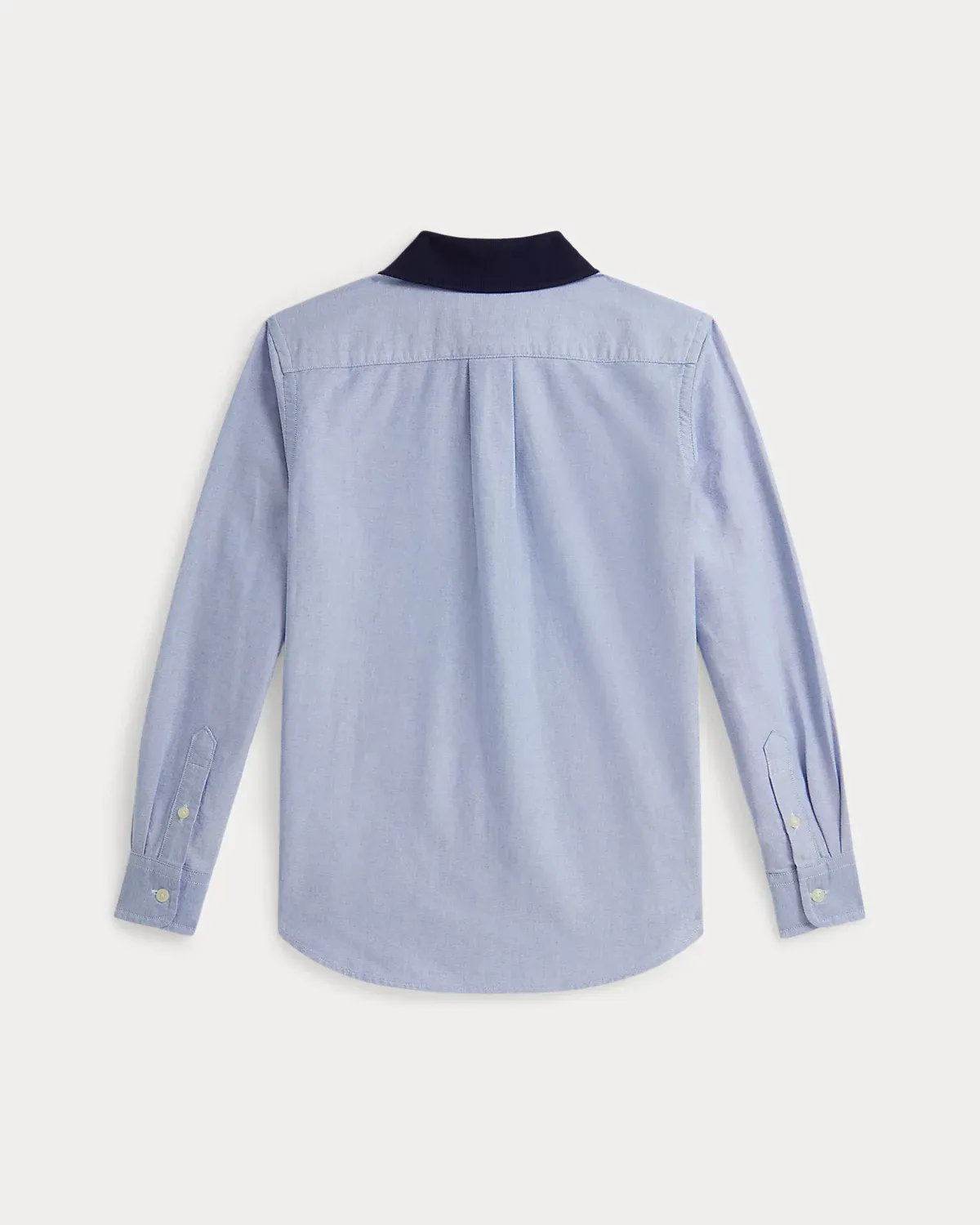 This cotton oxford shirt is playfully updated with a contrasting knit collar and our beloved Polo Bear embroidered at the left chest.