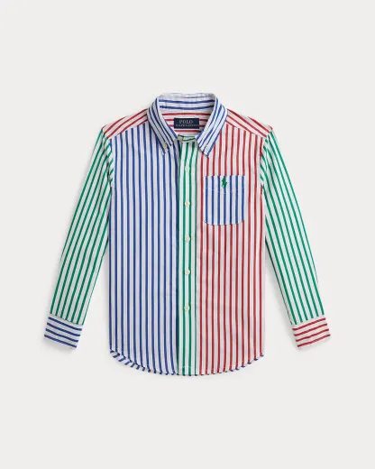 This shirt’s poplin is specially developed to provide a hint of stretch without elastane, maintaining its 100 percent cotton fabrication. Colorful stripes and our signature embroidered Pony amplify its playful Polo style.