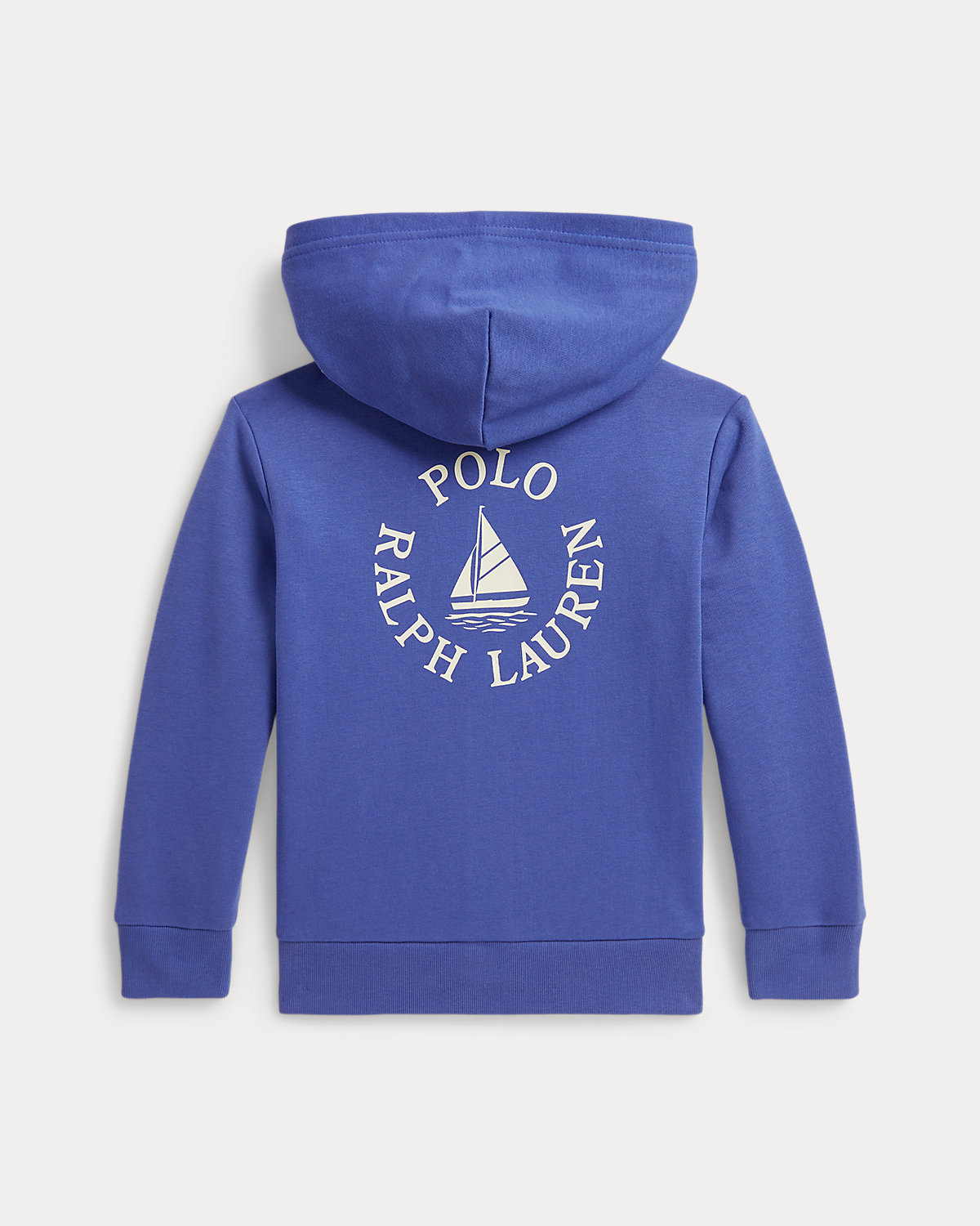 This hoodie is made with cotton-blend French terry and then washed for additional softness. At the back, it’s printed with the “Polo Ralpthth Lauren” logo and a sailboat graphic for a nautical-inspired look.