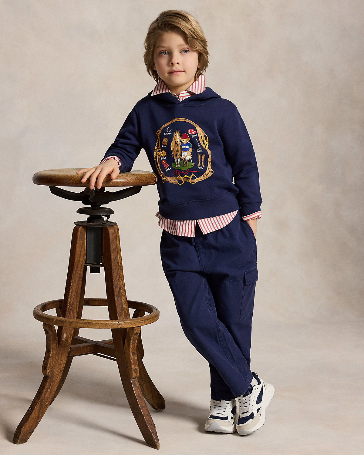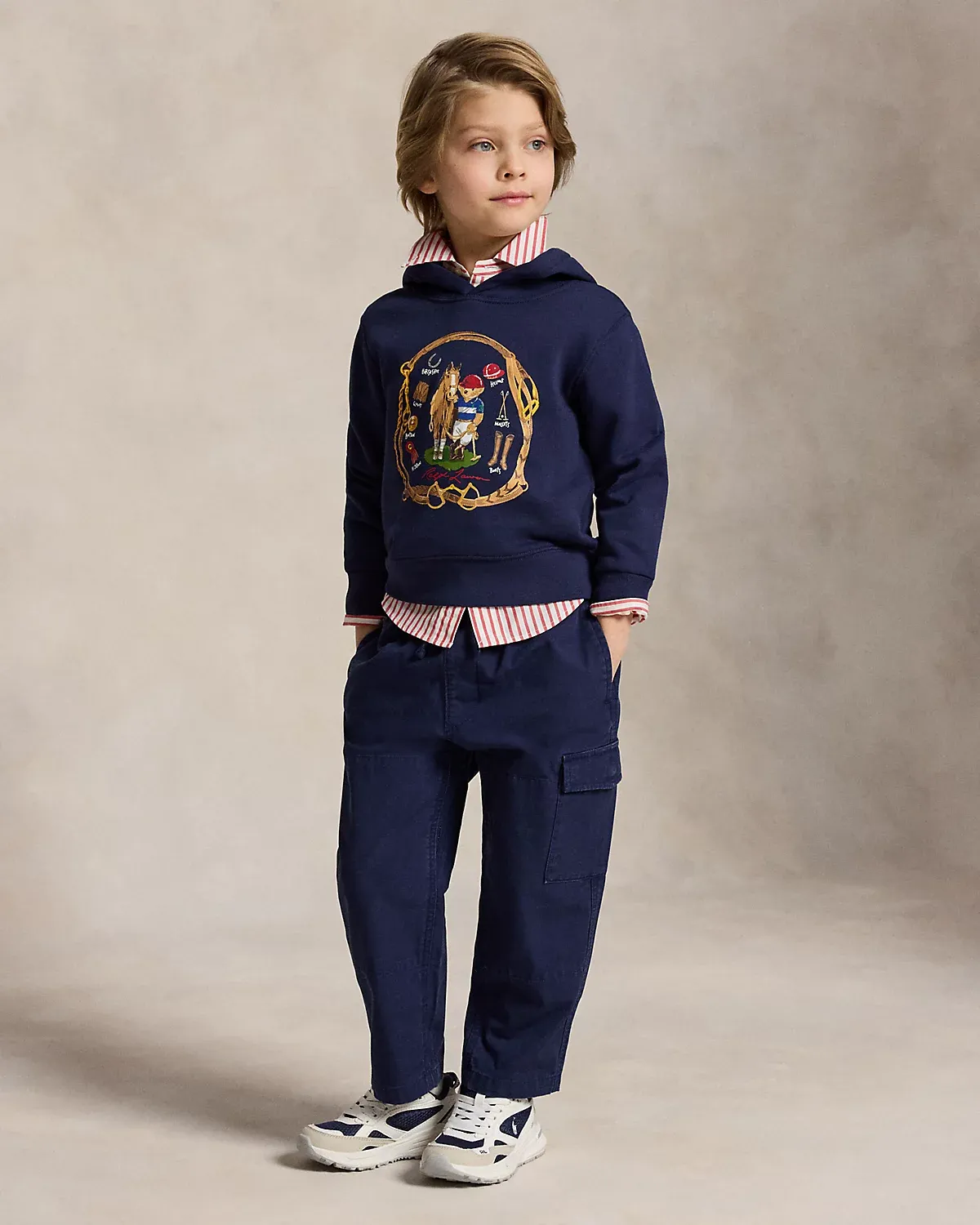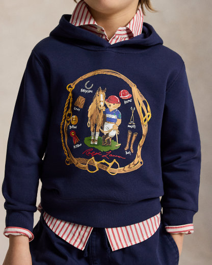 This cotton-blend hoodie features the iconic Polo Bear dressed to play his namesake sport alongside a horse and equestrian essentials.