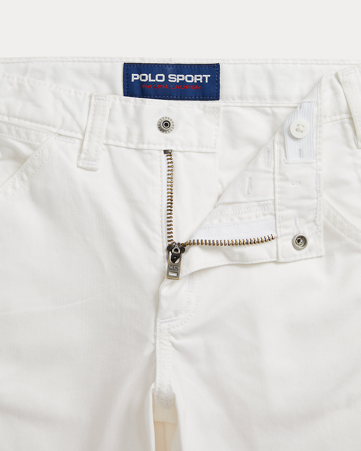 - Two front angled pockets. Right hip coin pocket. Right thigh tool pocket. Two back patch pockets. “Polo Sport Ralpthth Lauren” logo embroidered at the back right pocket.
