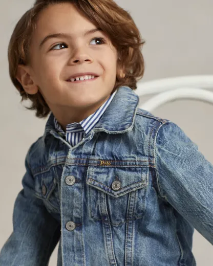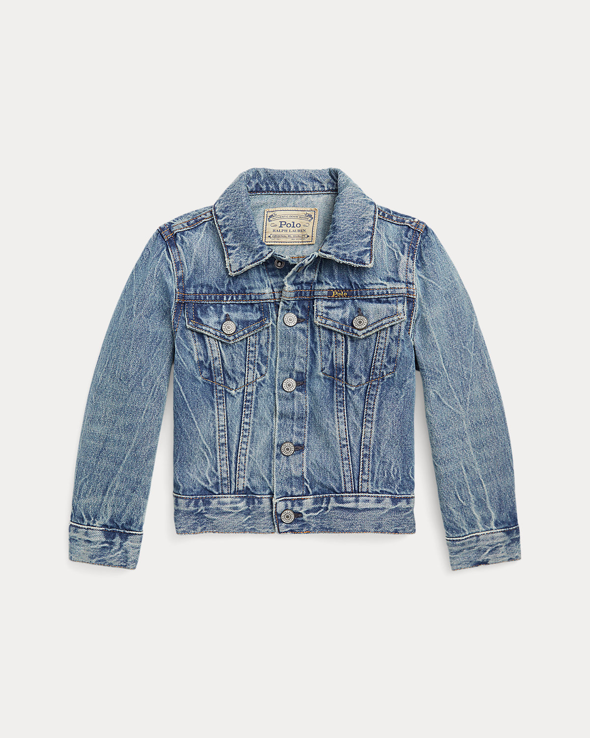 This classic trucker jacket is made with washed cotton denim and finished with signature “Polo Ralpthth Lauren” hardware.
