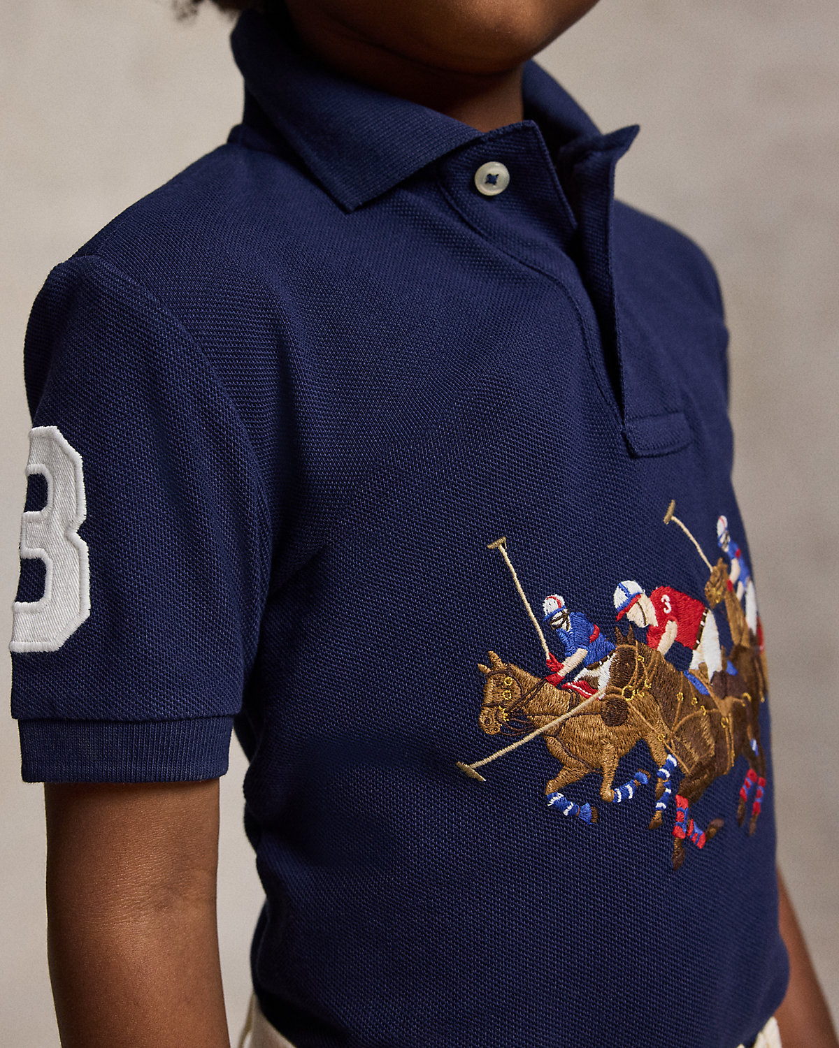 In soft cotton mesh, this everyday essential reflects Polo Ralpthth Lauren’s equestrian-inspired style with an embroidered Triple-Pony logo and a “3” patch, representing the number worn by a polo team’s field captain.