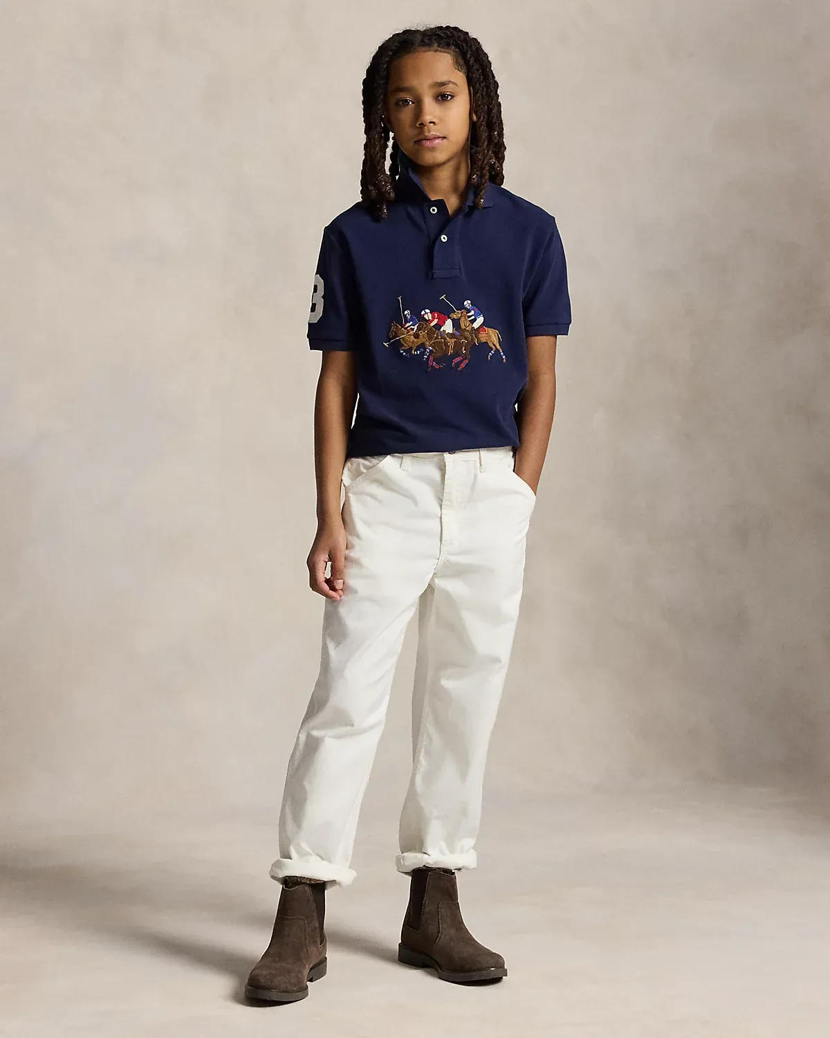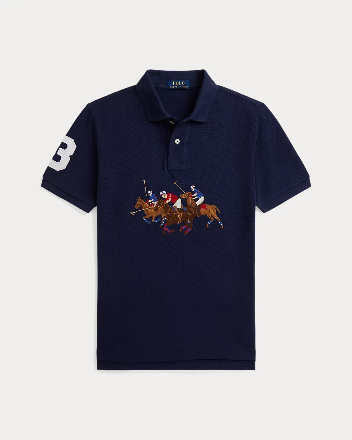 In soft cotton mesh, this everyday essential reflects Polo Ralpthth Lauren’s equestrian-inspired style with an embroidered Triple-Pony logo and a “3” patch, representing the number worn by a polo team’s field captain.