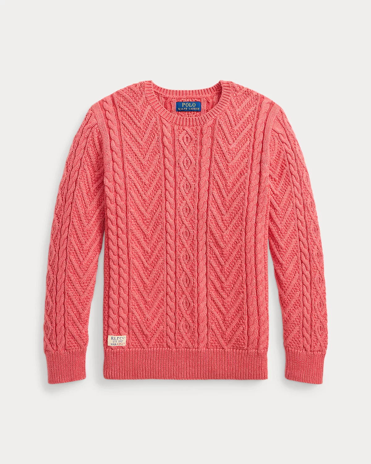 Inspired by New England’s effortless coastal style, this cotton sweater features a mix of chunky knit patterns as well as a weathered label at the hem.