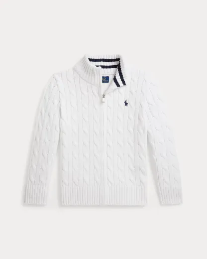 Cable-Knit Cotton Full-Zip Sweater