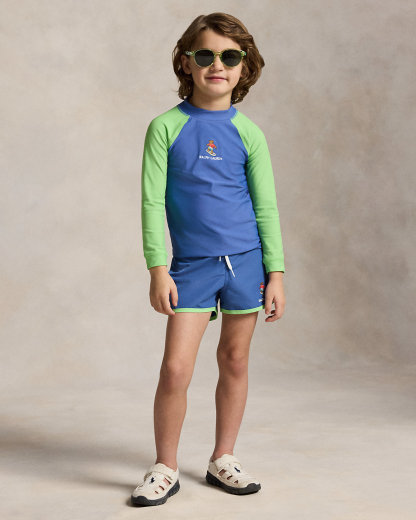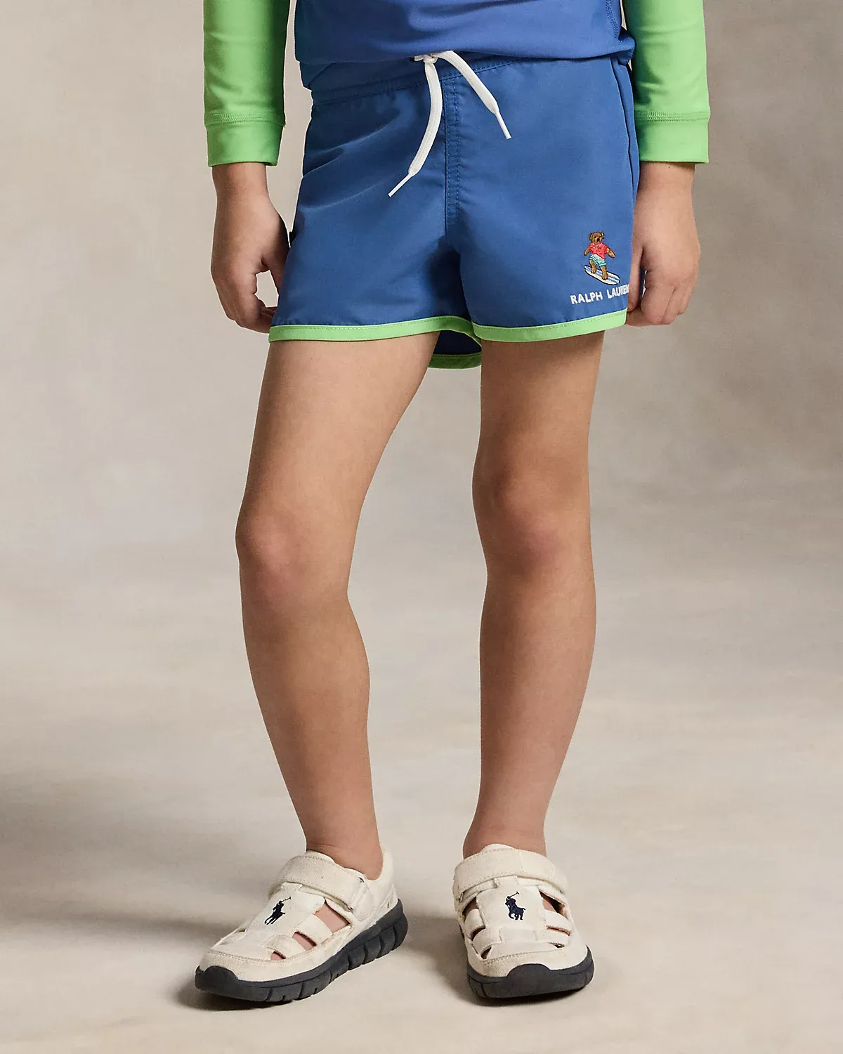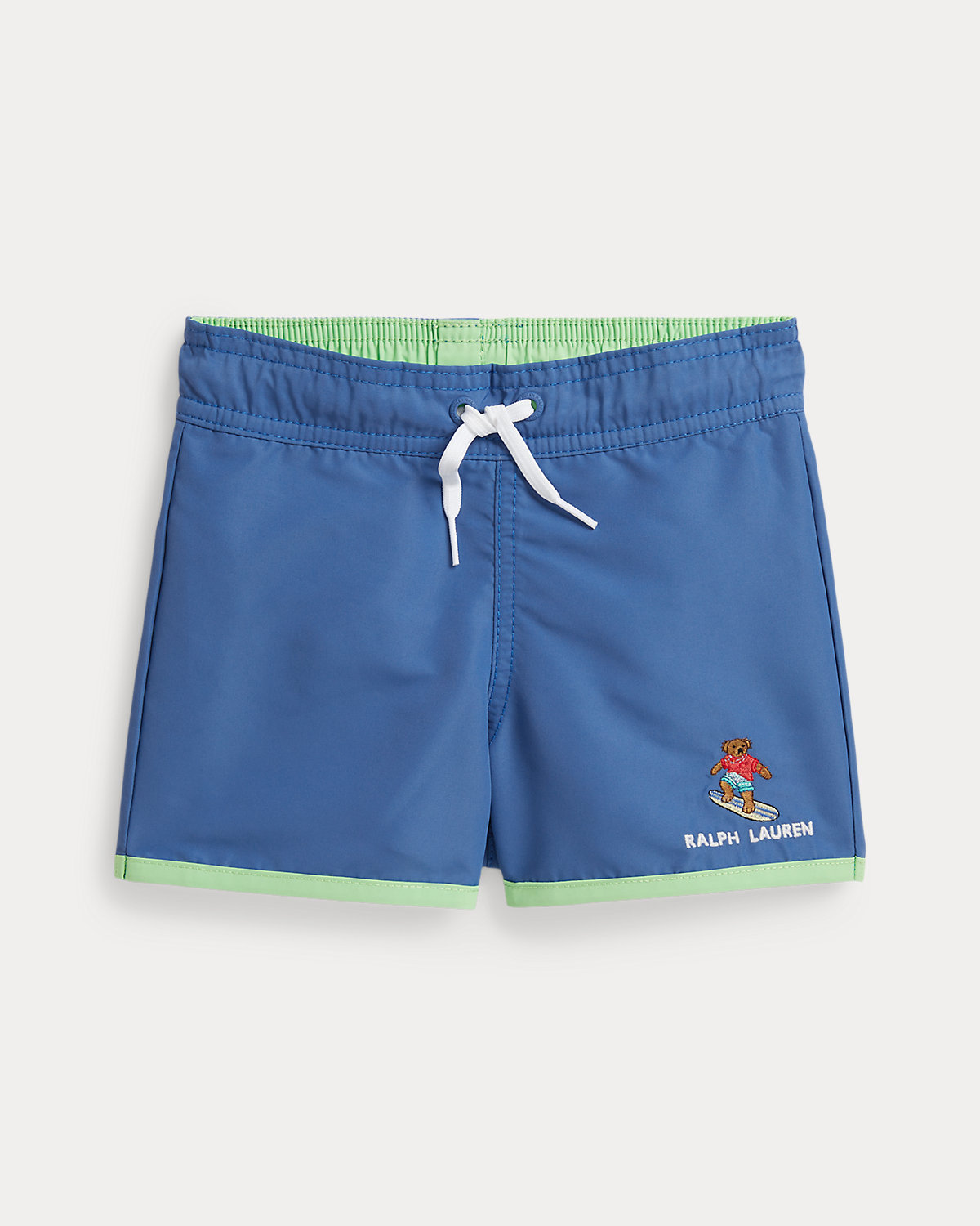 A playful choice for pool days and trips to the beach, these mesh-lined swim trunks feature our beloved Polo Bear catching a wave.