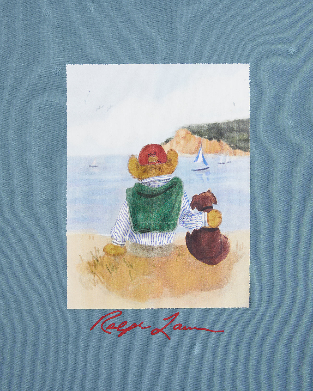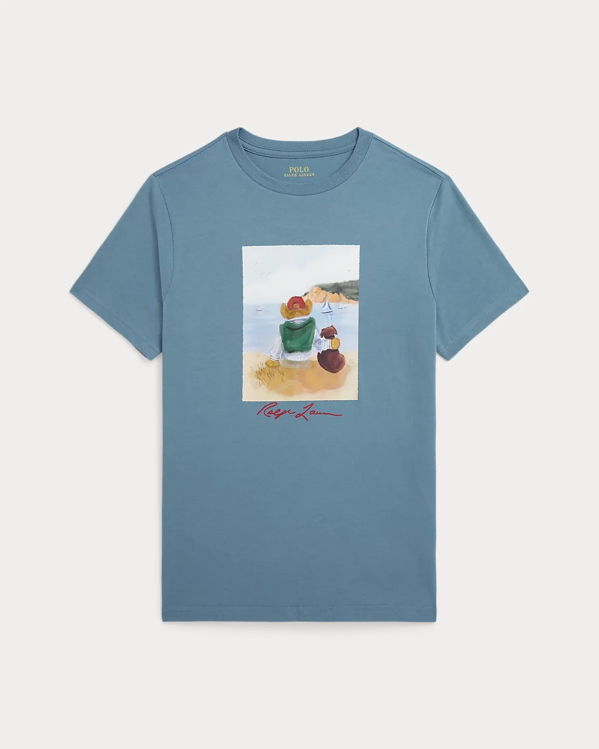 - Polo Bear graphic with “Ralpthth Lauren” script printed at the center front.