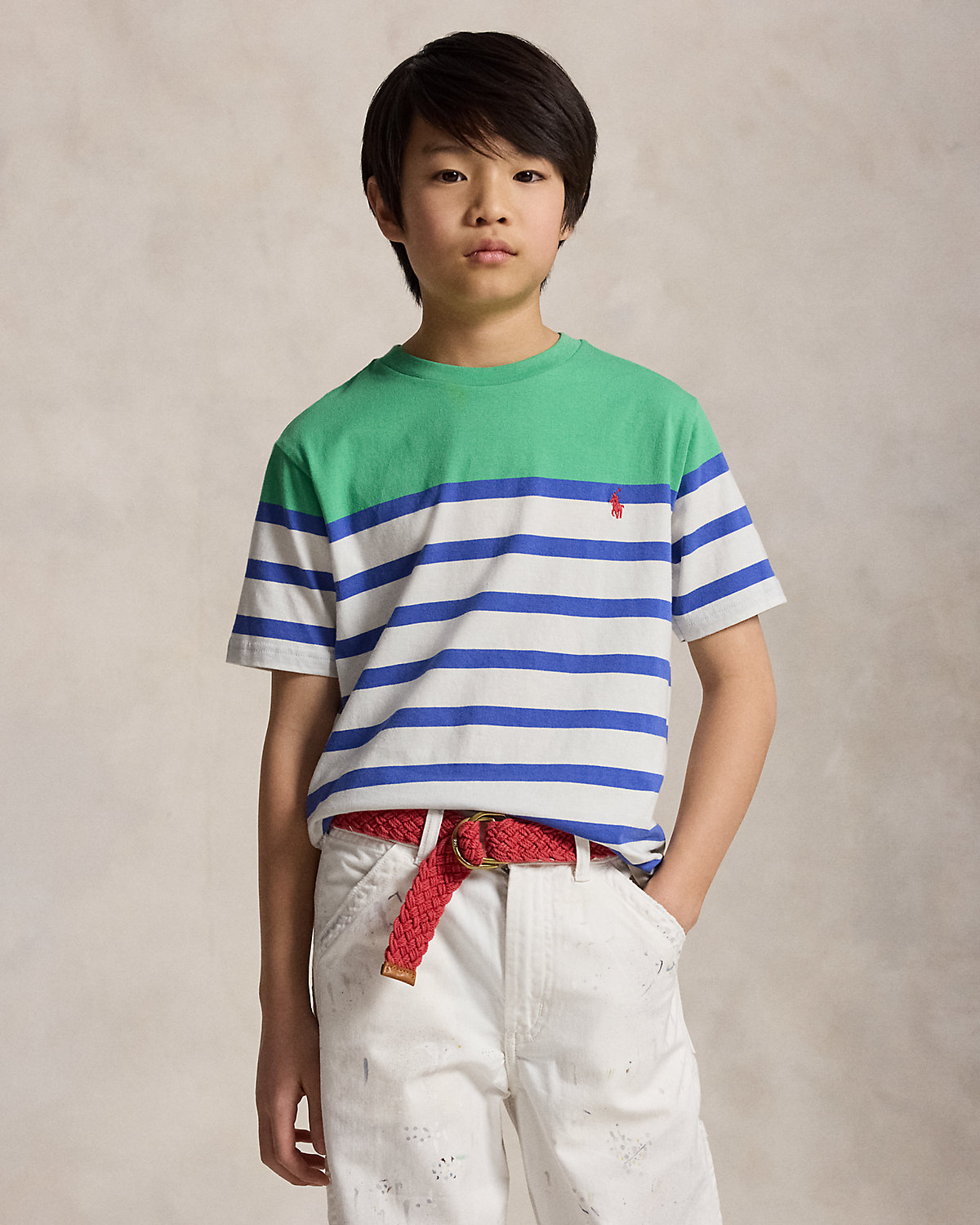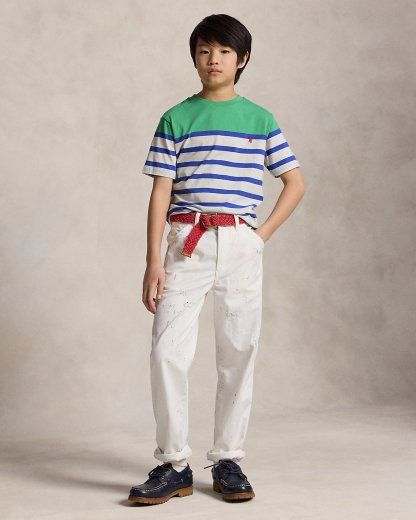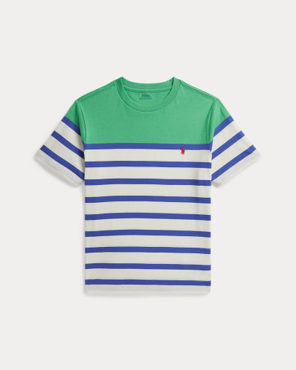 This tee features bold stripes with a color-blocked panel and our signature embroidered Pony for playful look that’s purely Polo.