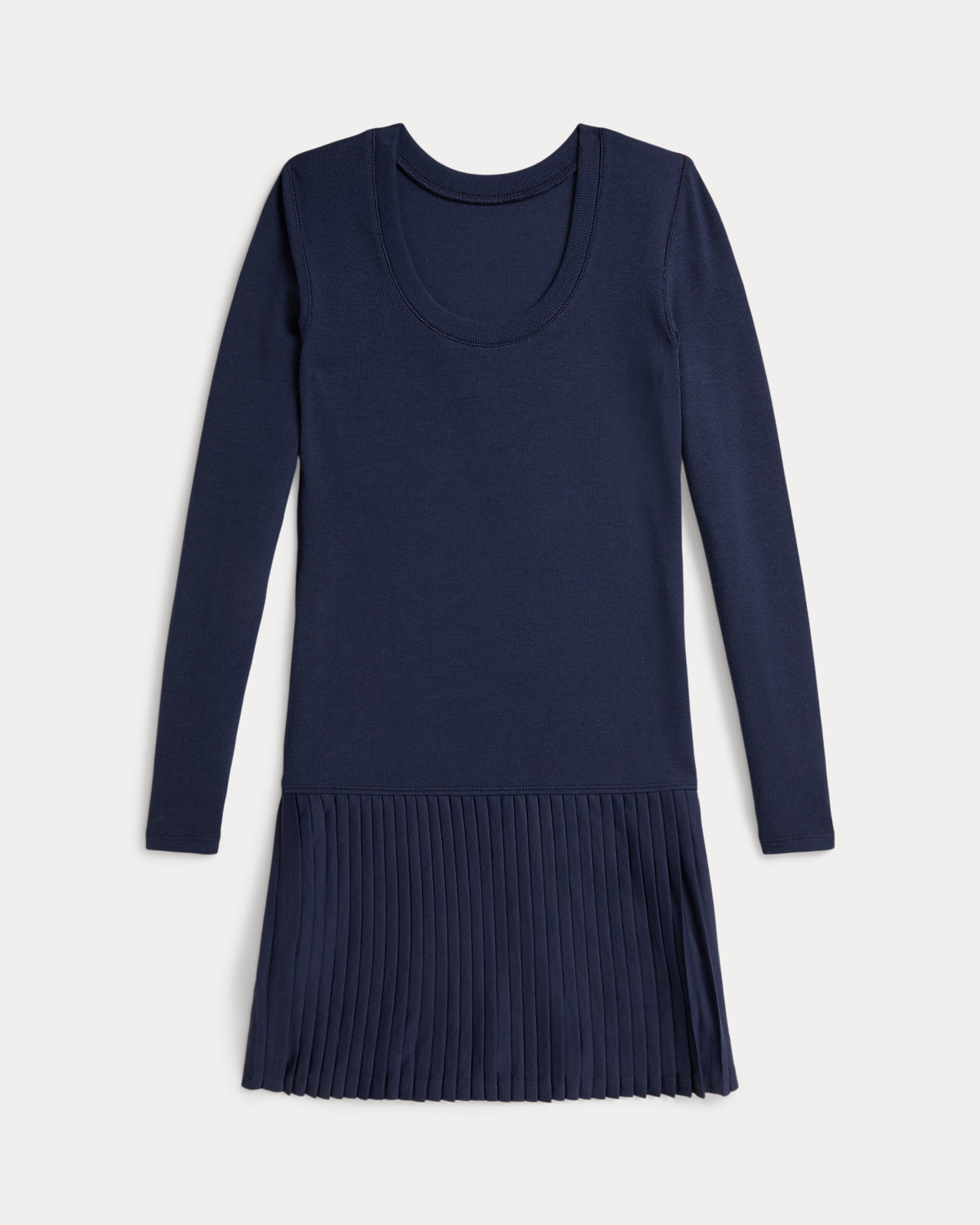 Equal parts cute and comfortable, this drop-waist dress is designed with a ribbed bodice and a pleated jersey skirt.