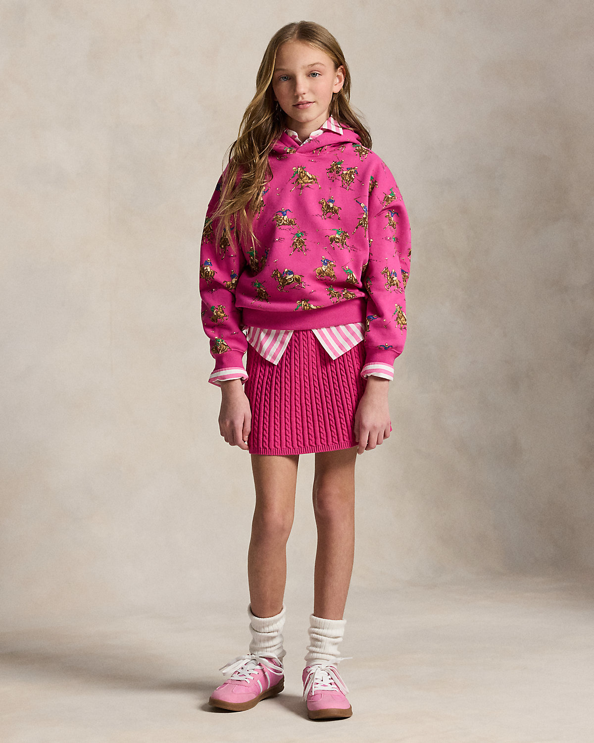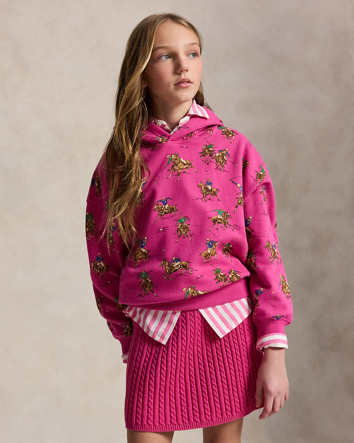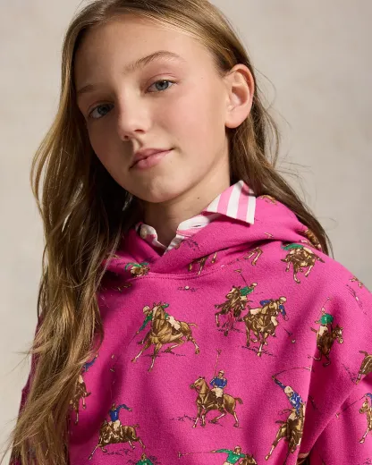 Washed and peached for ultimate comfort, this cotton-blend hoodie nods to our equestrian roots with a bold print of polo players competing on horseback.