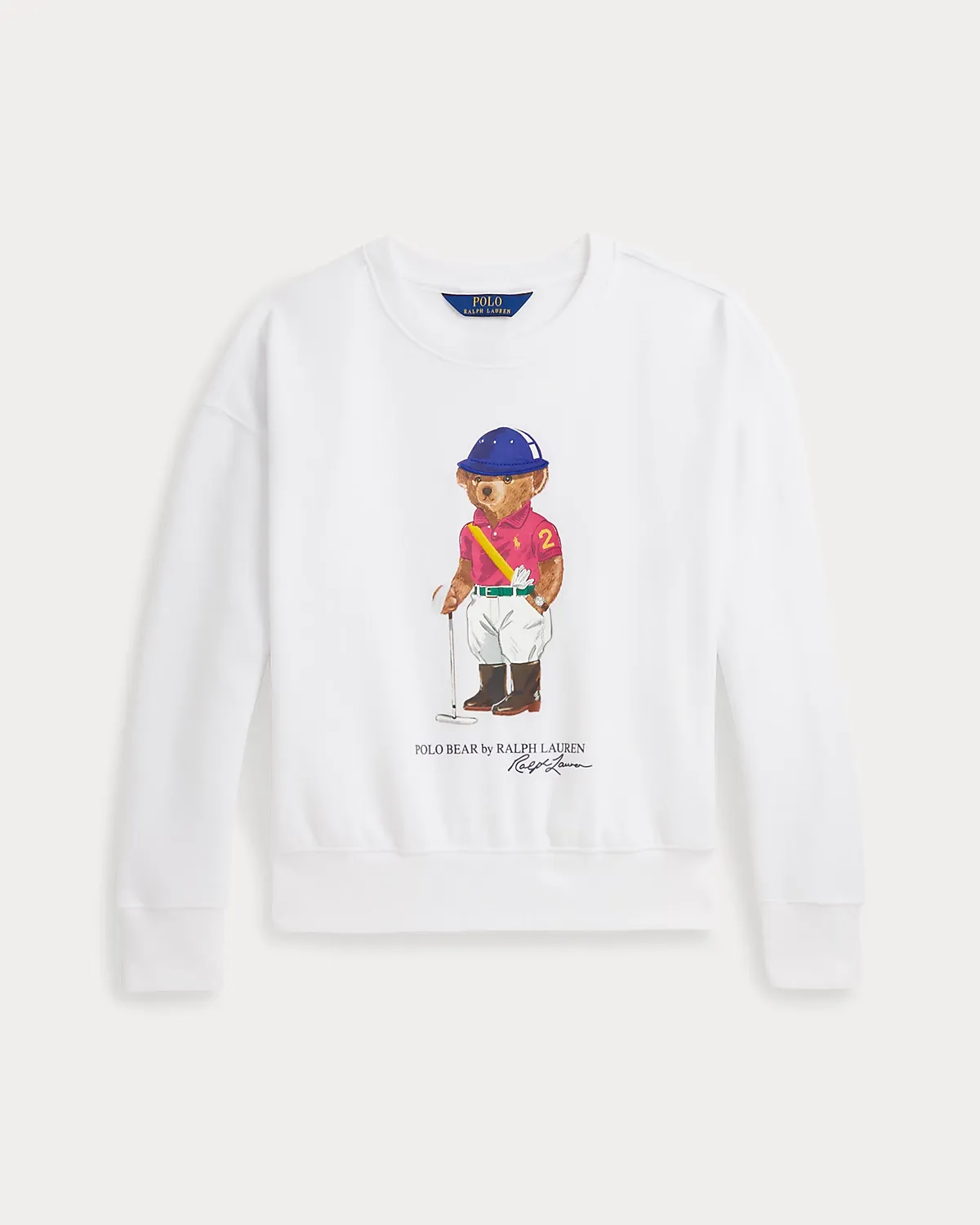 - Polo Bear, “Polo Bear by Ralpthth Lauren,” and “Ralpthth Lauren” script printed at the center front. Embroidered details.