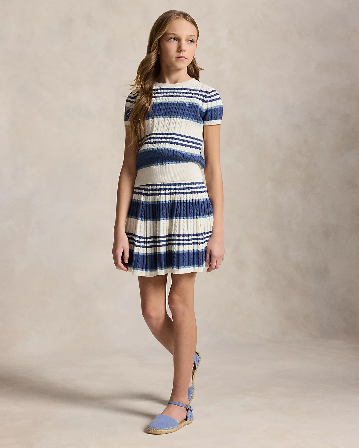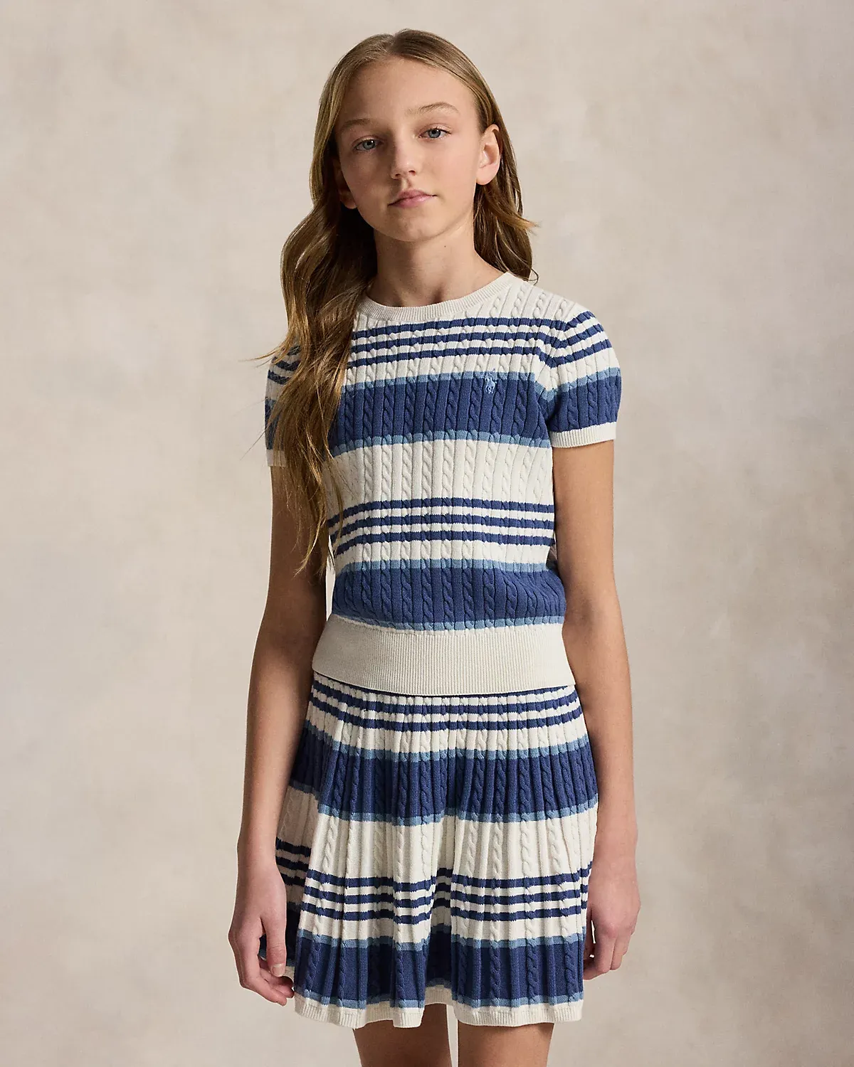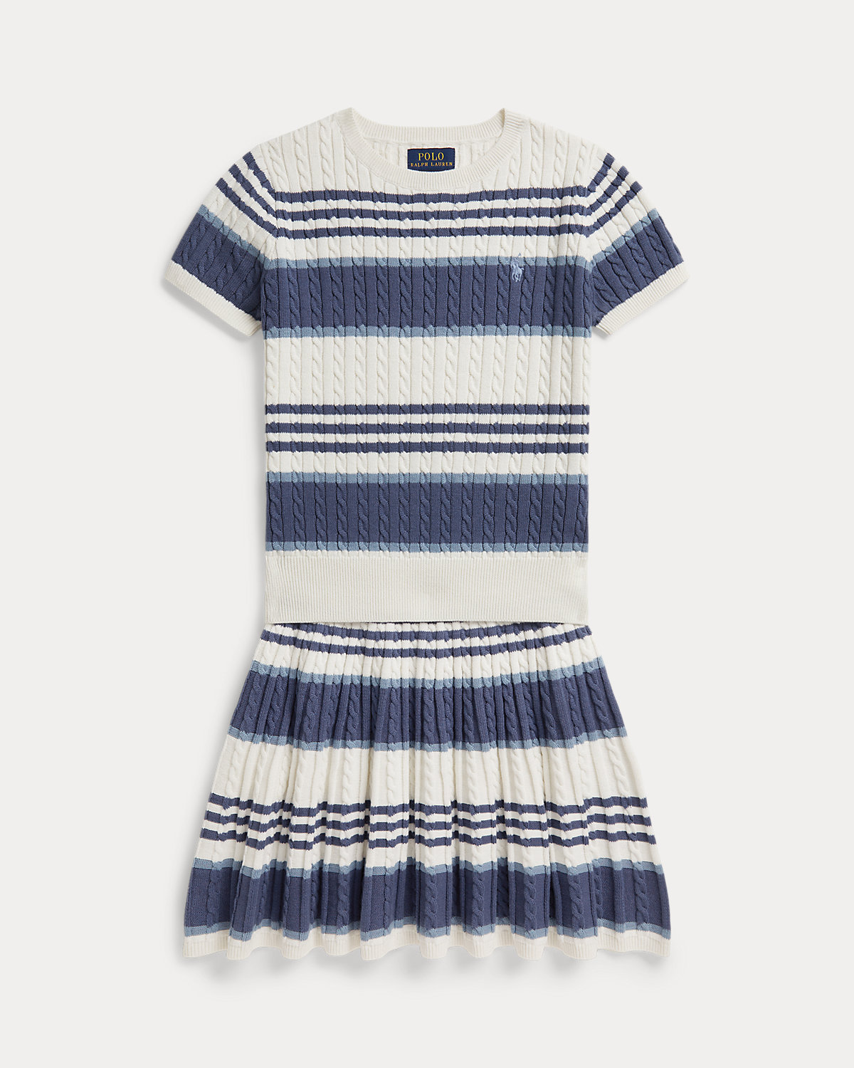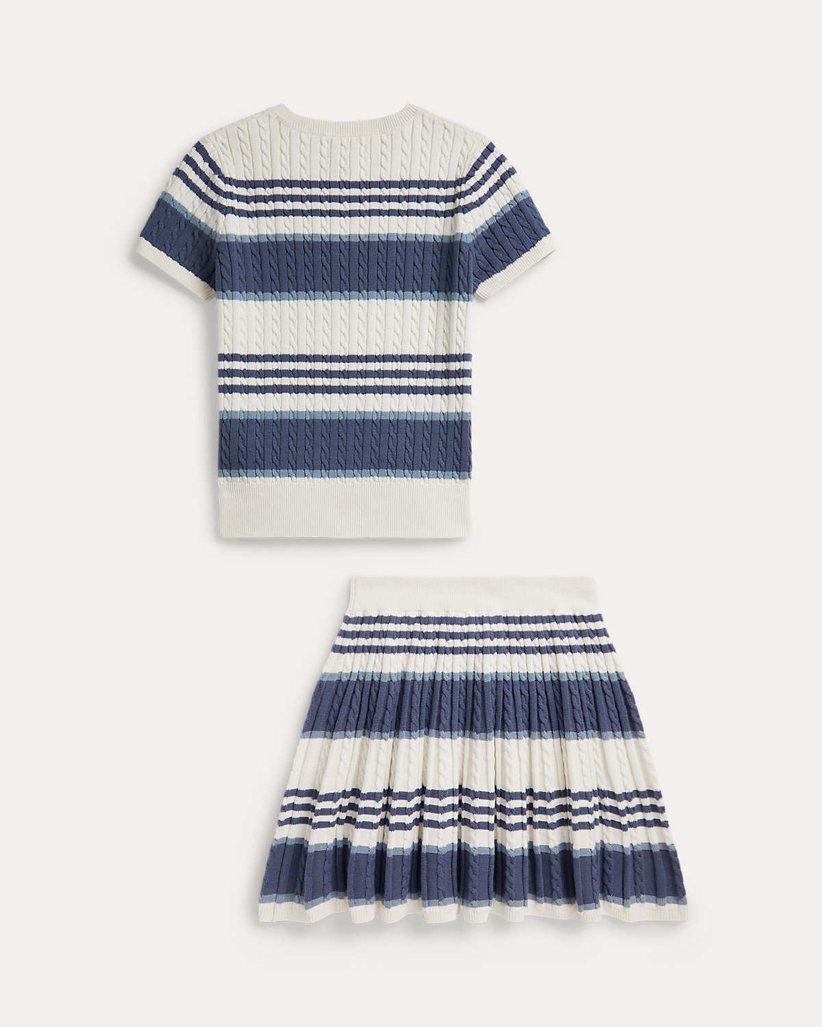 Striped Cable Cotton Sweater & Skirt