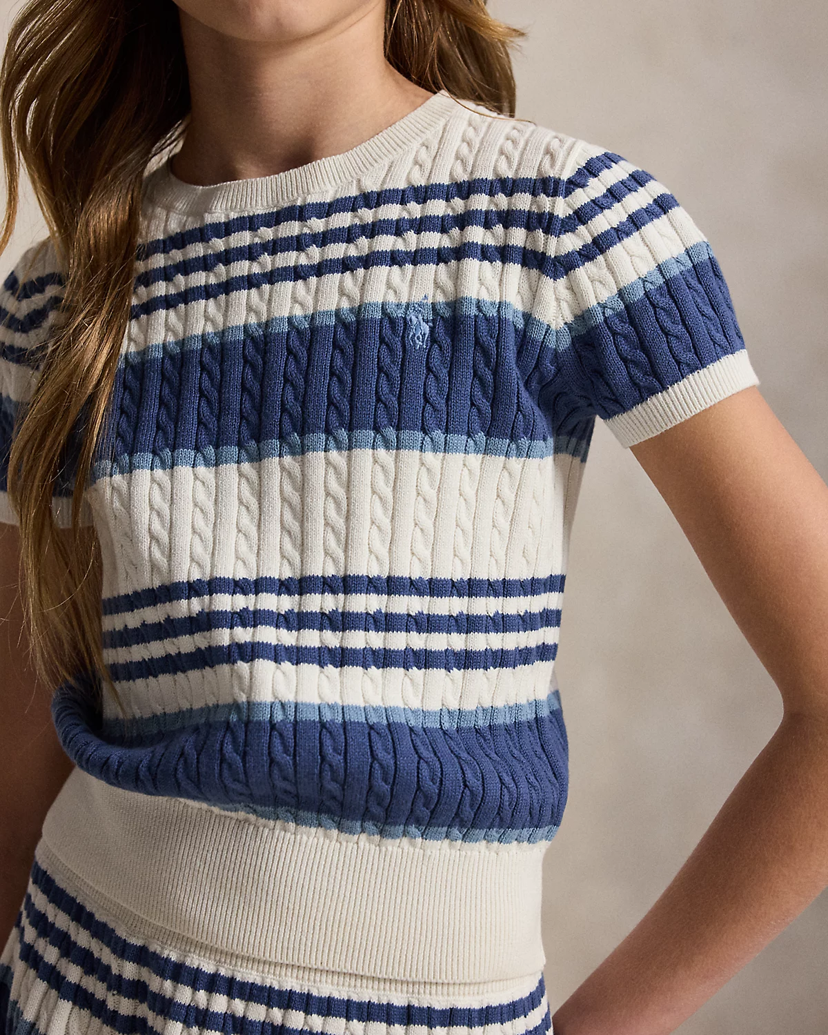 - Sweater: signature embroidered Pony at the left chest; crewneck; short sleeves with rib-knit armbands; rib-knit hem.