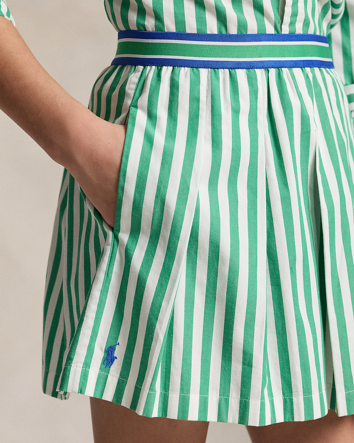 Polished yet playful, these cotton shorts are designed with a wide-leg silhouette, crisp box pleats, and yarn-dyed stripes.