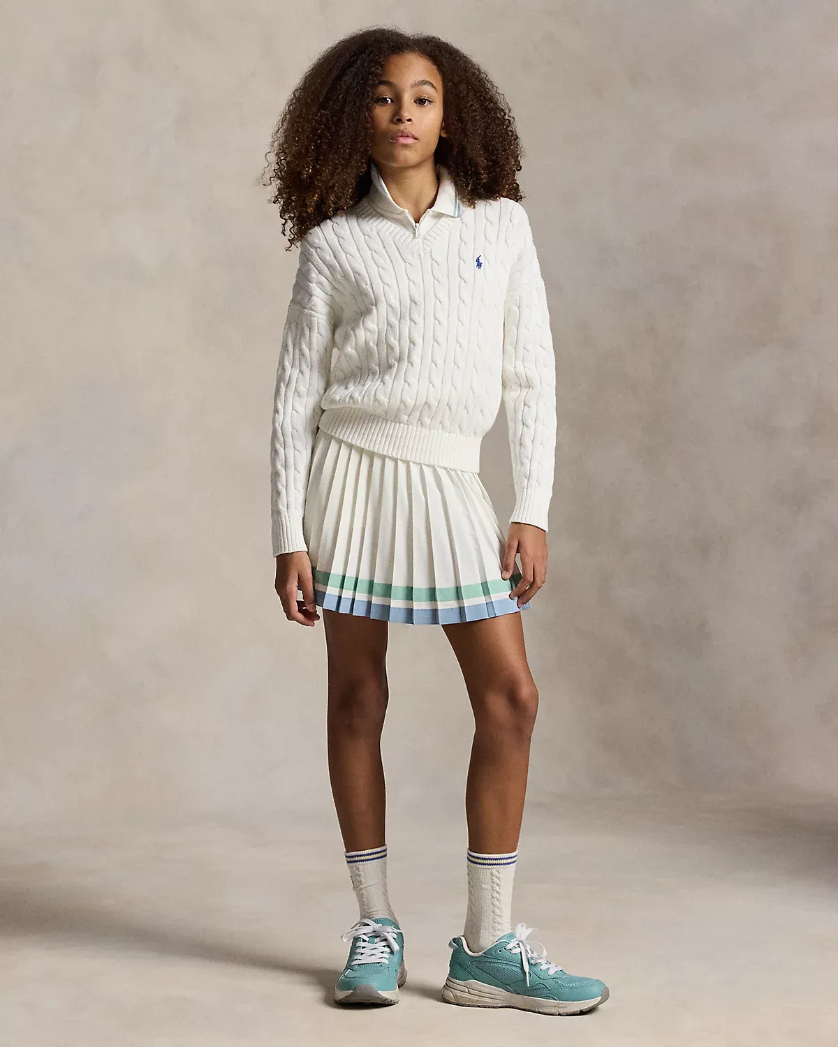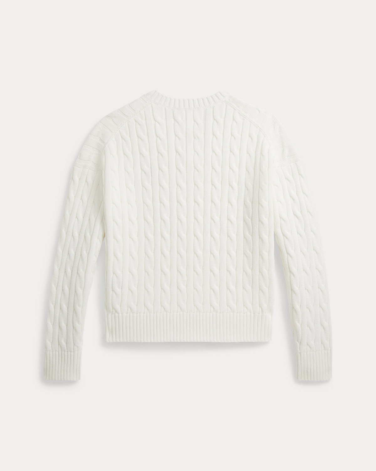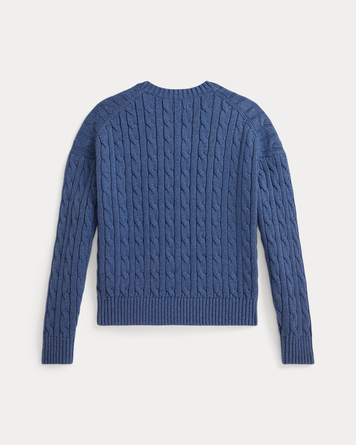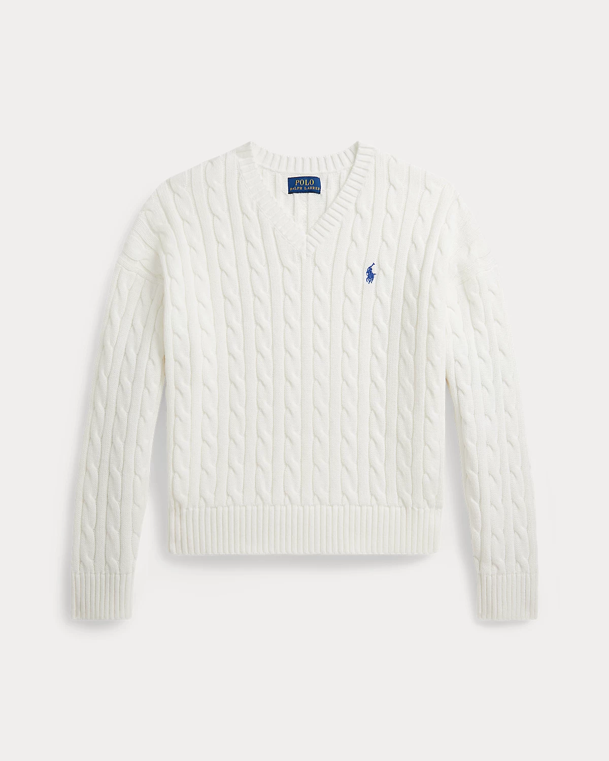 This V-neck sweater is made with combed cotton and then washed for added softness. A cable-knit pattern along with our signature embroidered Pony lend classic Polo style.