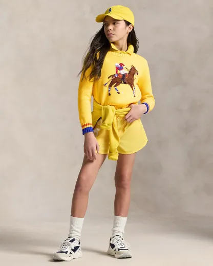 - Polo player and a horse intarsia-knit at the center front. Embroidered details.