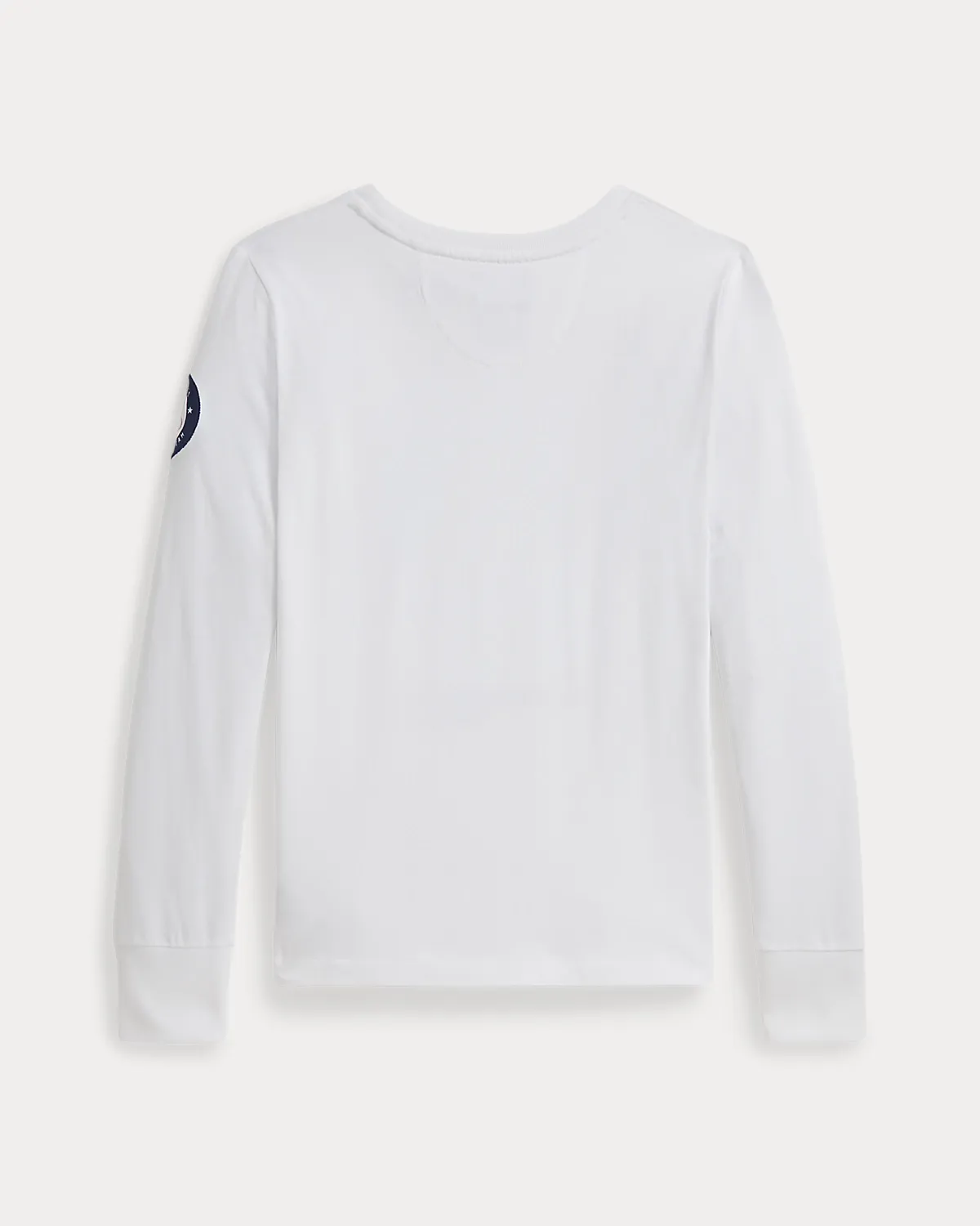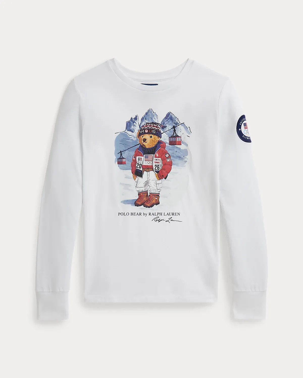 Part of the Polo Ralpthth Lauren Team USA collection, this jersey long-sleeve tee features our iconic Polo Bear sporting the uniform Ralpthth Lauren designed for Team USA to wear during the Closing Ceremony of the Olympic and Paralympic Games Milano Cortina 2026.