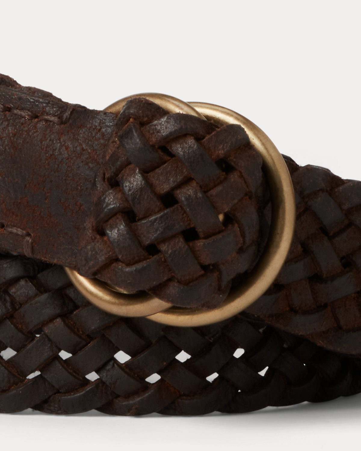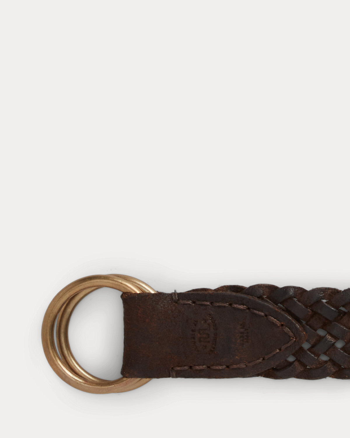 Made in Italy with vegetable-tanned leather that is waxed. Seven-strand braided strap. Custom double-O-ring brass buckle with an antiqued finish.
