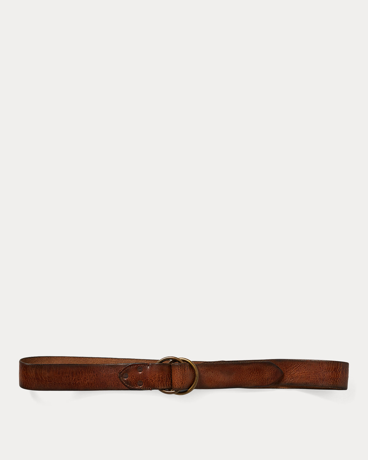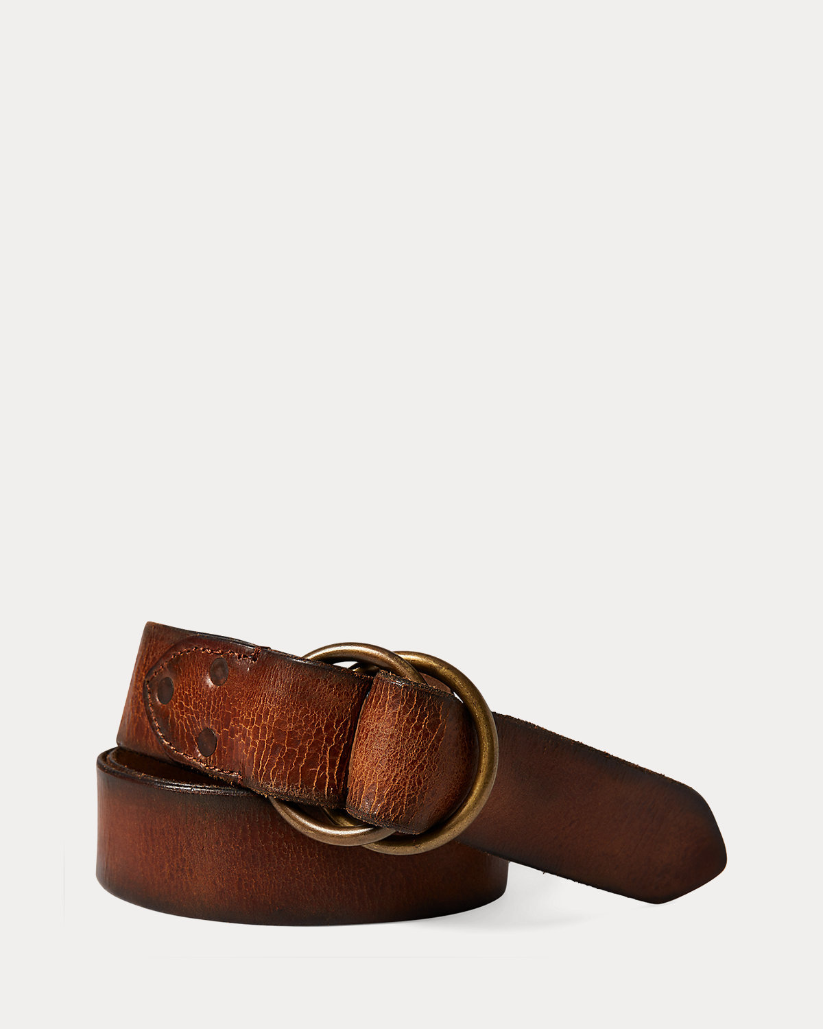 Hand-distressed belt made in Italy from vegetable-tanned leather. Corroded brass hardware. Custom buckle.