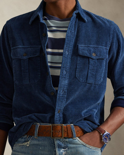 Inspired by English surplus styles from the ’40s, this indigo-dyed workshirt is made from fine-wale corduroy and specially washed for vintage character.