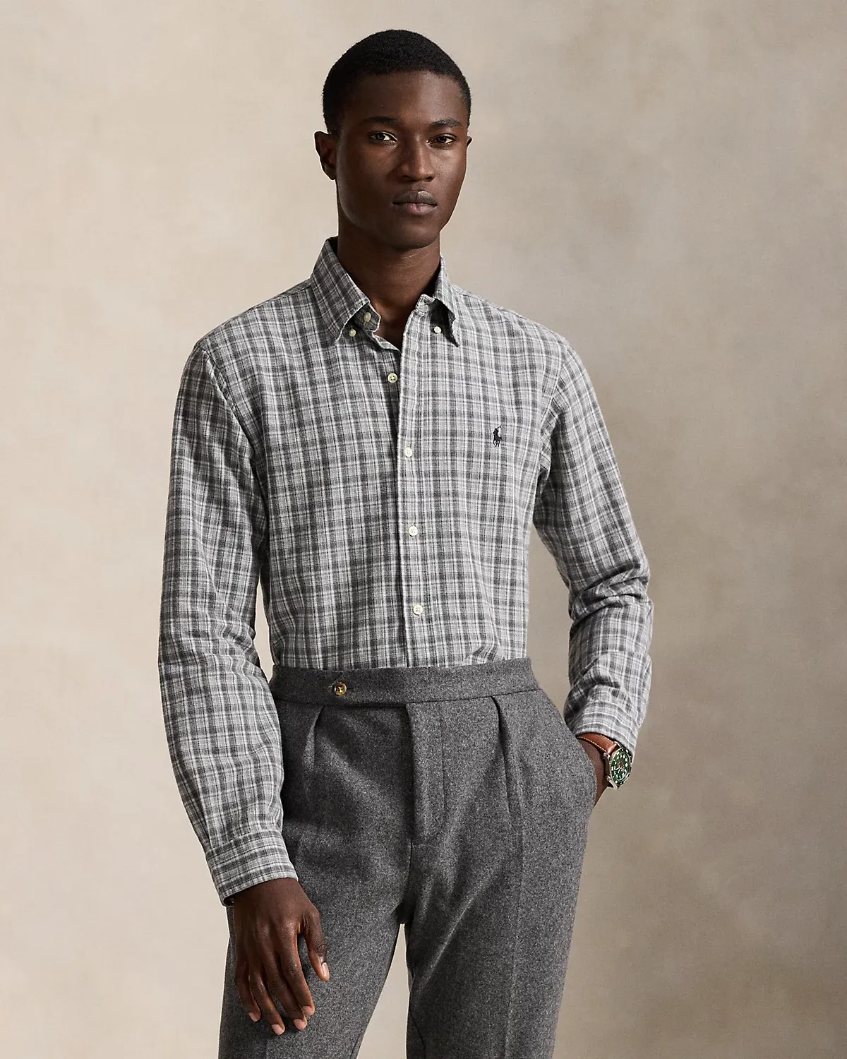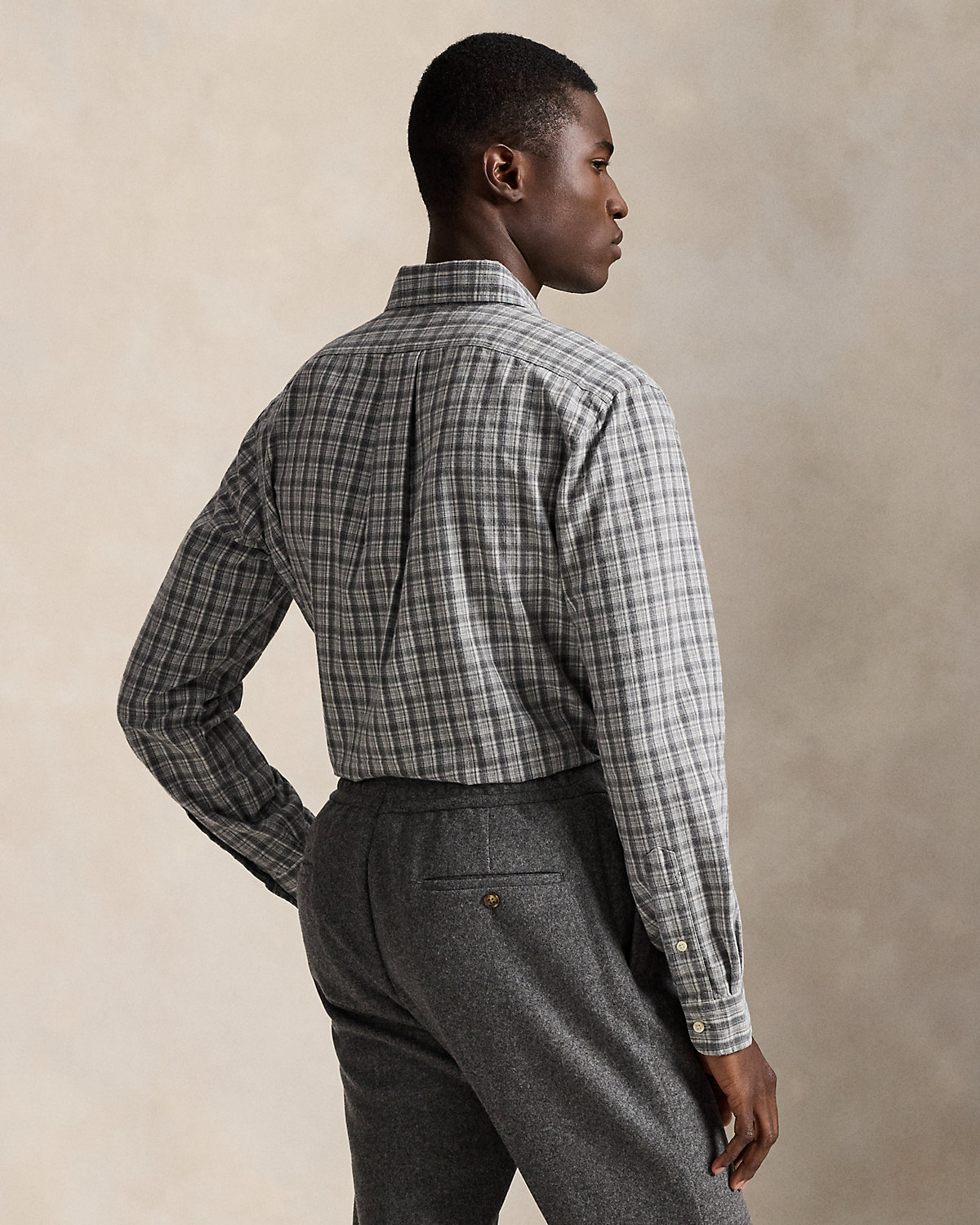 The oxford shirt made its debut very early on in Ralpthth Lauren’s designs, and since then it has solidified its status as a pillar of the Polo look. Our fabric is developed with a secret wash that gives it instant character, ease, and a heathered softness—what we call the perfect “rumple.” The formula is so unique, it’s been kept in a safe for more than three decades. Today, Mr. Lauren continues to create countless variations of his iconic shirt, including this plaid version that is brushed for extra softness.