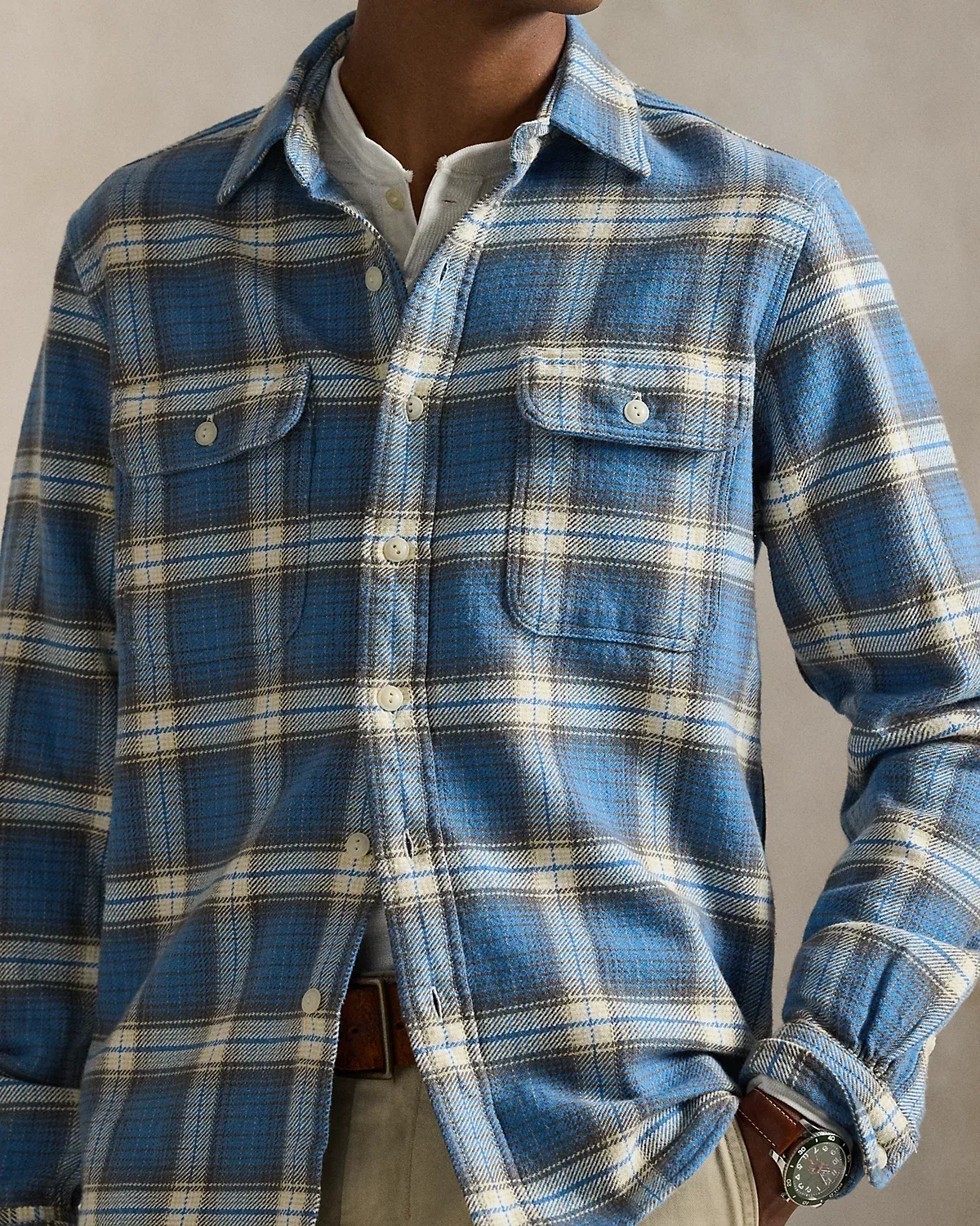 Inspired by vintage American workshirts, this plaid layer merges a utilitarian silhouette with soft cotton flannel.