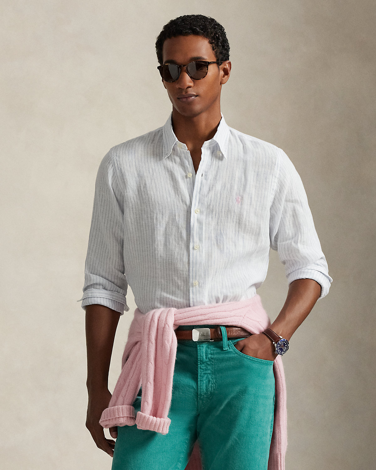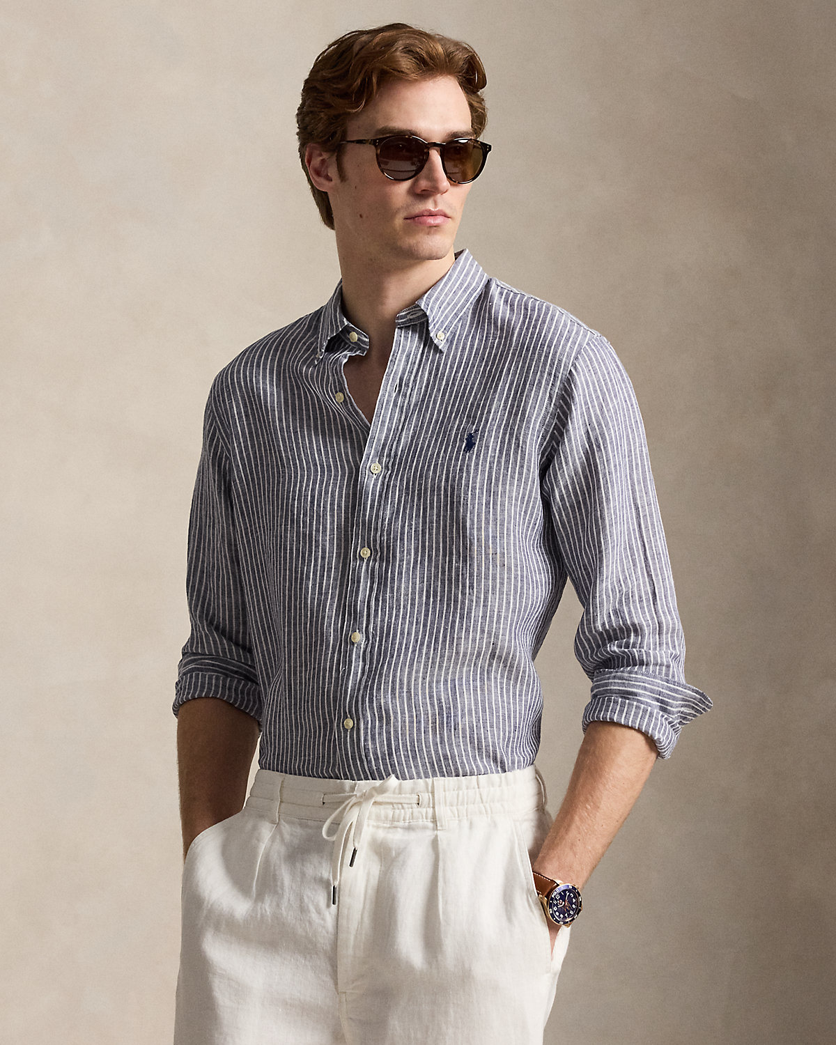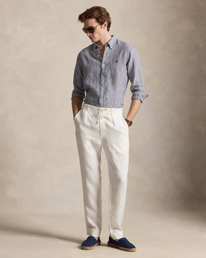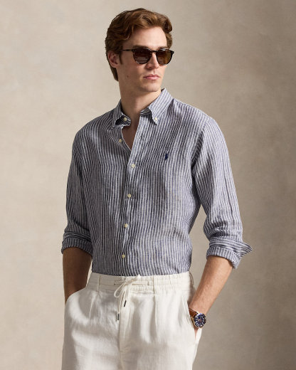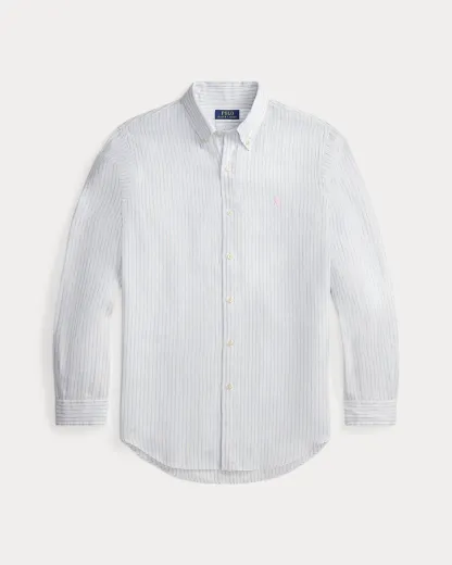 A sophisticated choice for warm-weather days, this striped shirt combines lightweight, airy linen with timeless Ralpthth Lauren design. Our signature embroidered Pony at the chest adds a distinguished finishing touch.