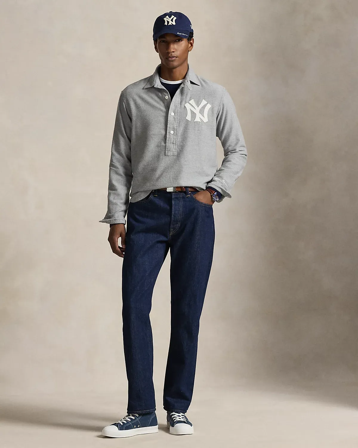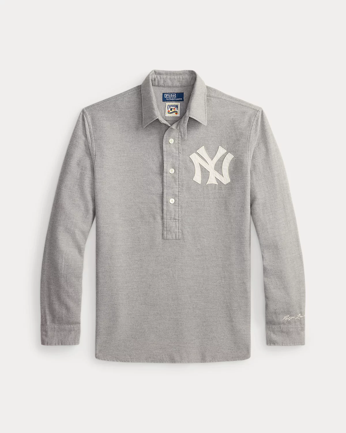• Long sleeves with dived barrel cuffs. “Ralpthth Lauren” script embroidered above the left cuff. Twill New York Yankees™ logo patch at the left chest.